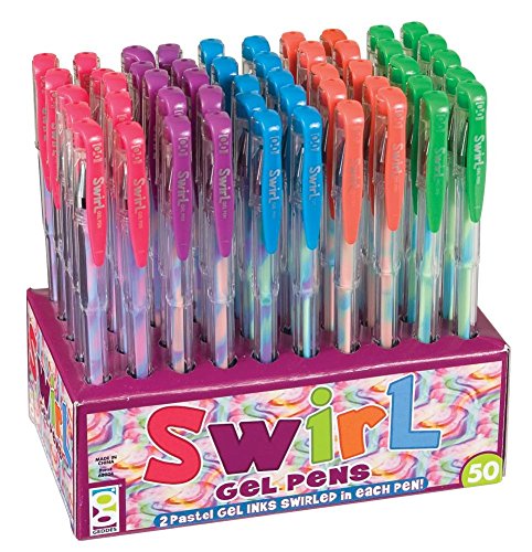 Raymond Geddes Multicolored Swirl Gel Pens are fun and adorable stationery supplies. Each 50 pack includes 5 kinds of color combinations: blue, pink, orange, green, and purple. The gel ink pens feature 2 gel inks in each pen and do merge and stay in colorful swirls. The pens are perfect for arts and crafts, scrapbooking, yearbooks, and school projects. At Raymond Geddes, we make our mission to supply students and adults with imaginative and affordable pens, pencils, mechanical pencils, erasers, and other school supplies designed for school stores, classrooms, and education fundraising.