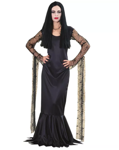 Everyone loves Morticia from the American's favorite horror family the Addam's Family. The Adult Morticia From the Addams Family Costume comes with a long black floor-length satin gown with spider web patterns and long flowing lace sleeves.