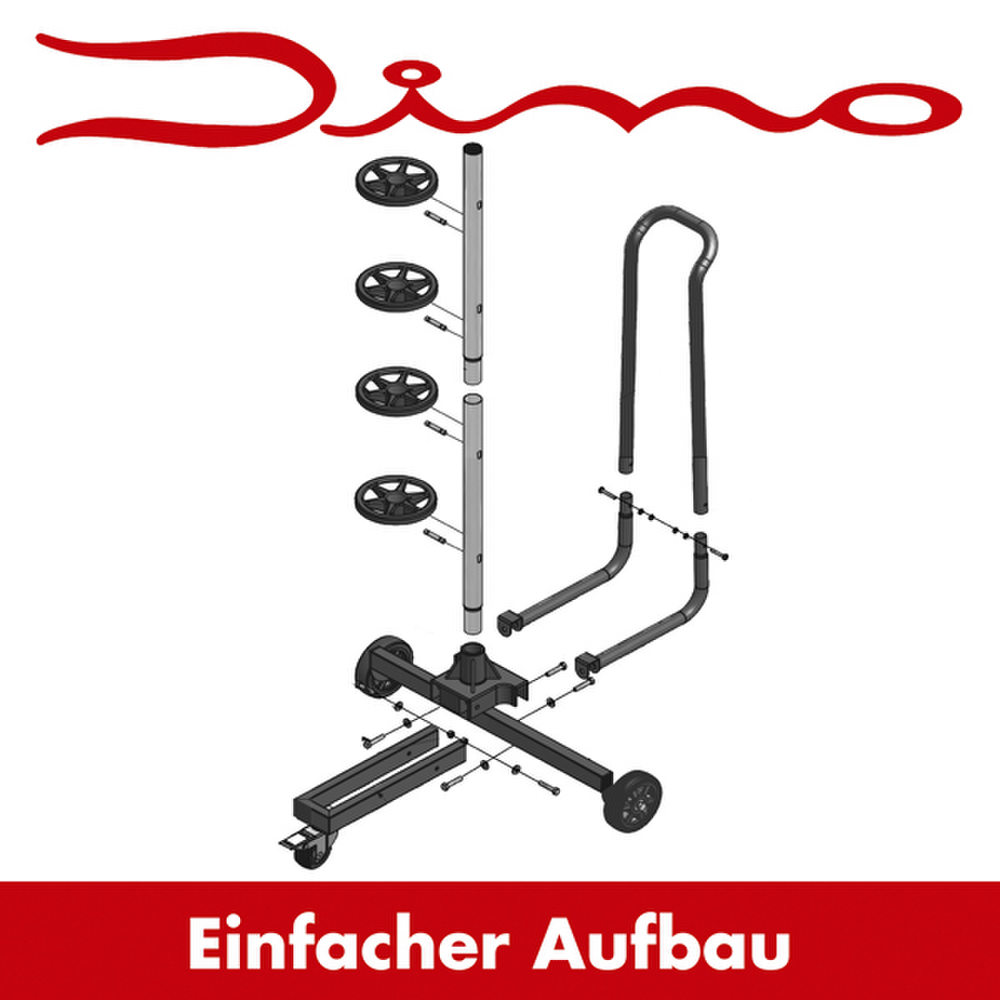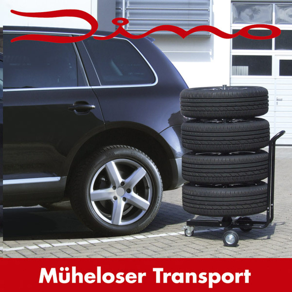 FAHRBARER FELGENBAUM XL von Dino für vier Kompletträder bis 285mm Reifenbreite & bis 18 Zoll Felgengrösse.