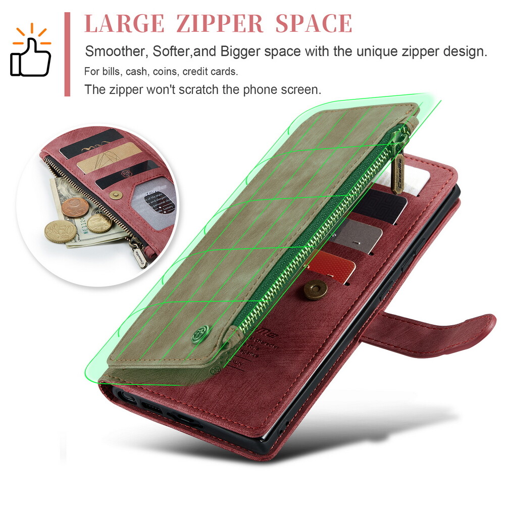 This wallet case includes 5/7/10 standard card slots + 1 ID card slot + 1 cash slot + 1 zipper wallet pocket (highly smooth zipper). You can carry your ID/ credit or debit cards/driver's license/ some cash and small notes without taking your bulky wallet. The hands-free viewing stand design allows your phone to stand independently and is perfect for video-chatting and movie-watching.