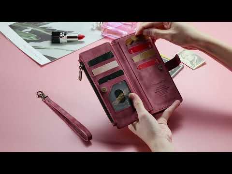 1 x CaseMe Zipper Wallet Kickstand Case with Wrist Strap