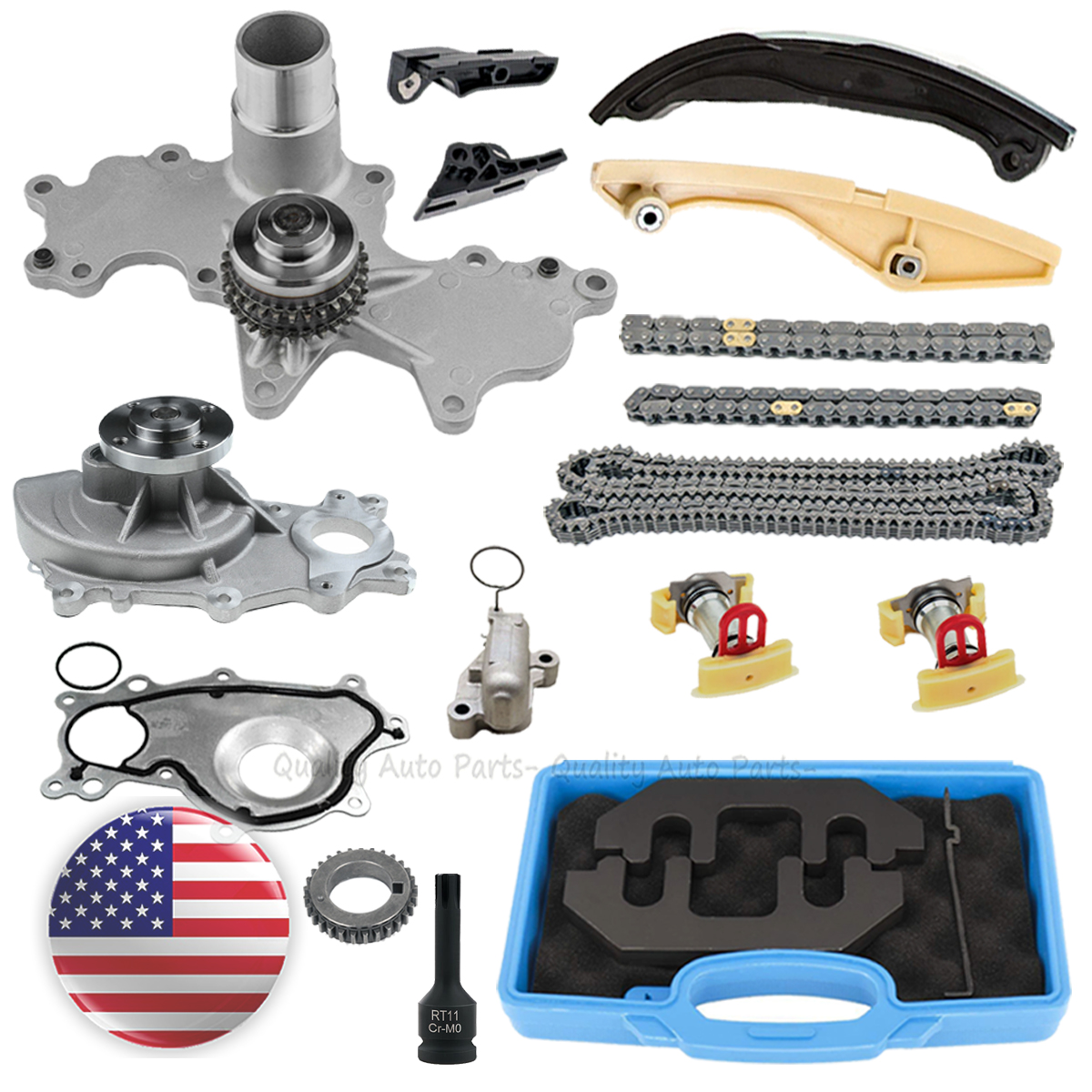 This timing chain kit is just what you need to keep your car in good running order.The parts that you will receive in this kit are high quality timing chain parts that the dealers and rebuilding shops use every day. So, do not settle for poor quality parts when it comes to engine repair.