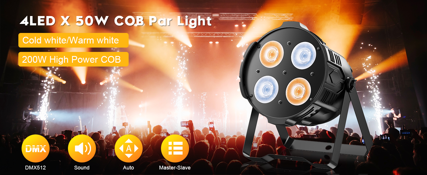 2. Portable par light have four working modes: self-propelled/sound activated/DMX/master-slave, which can meet the needs of different scenes.