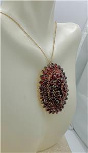The early oval locket pendant is adorned with four layers of faceted garnets. The garnets are pear shape and round and are of absolutely magnificent blood red color. I cannot say enough about the color of these Bohemian Garnets. The fabulous cuts of the gems give them extraordinary brilliance. The garnets are set in Silver Gilt as was the custom of the Bohemian jewelers in the 19th Century.