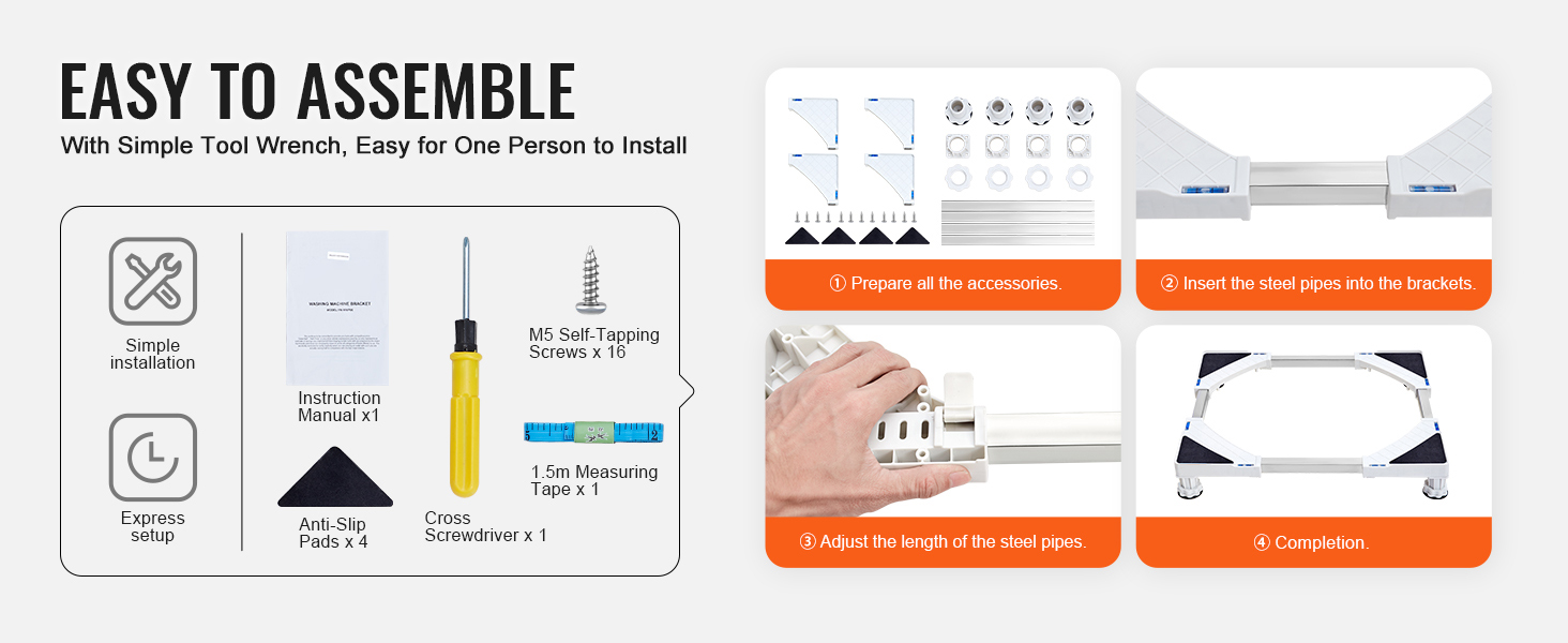 Quick and Easy Assembly: Installation takes just 10 minutes with the included simple tool wrench. It can be easily assembled by one person. Adjusting the extension only requires following the instructions, ensuring that all depth measurements are consistent to prevent damage to the base.