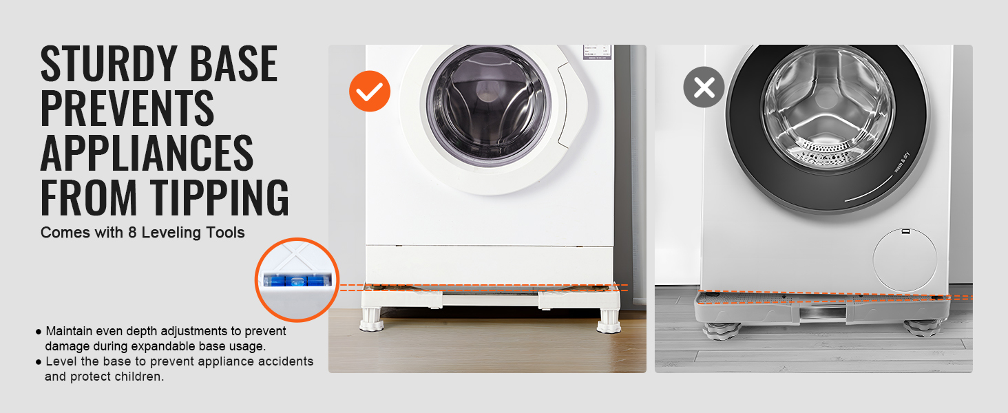 Built-in Spirit Level for Balance: Prevent appliances from tipping over with the included 8-level bubble level, ensuring that uneven floors do not cause balancing issues or potential damage to the appliance or pose a risk to children.