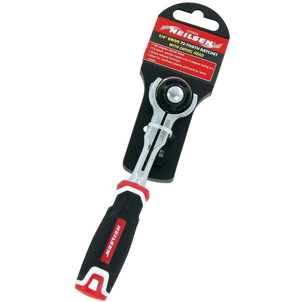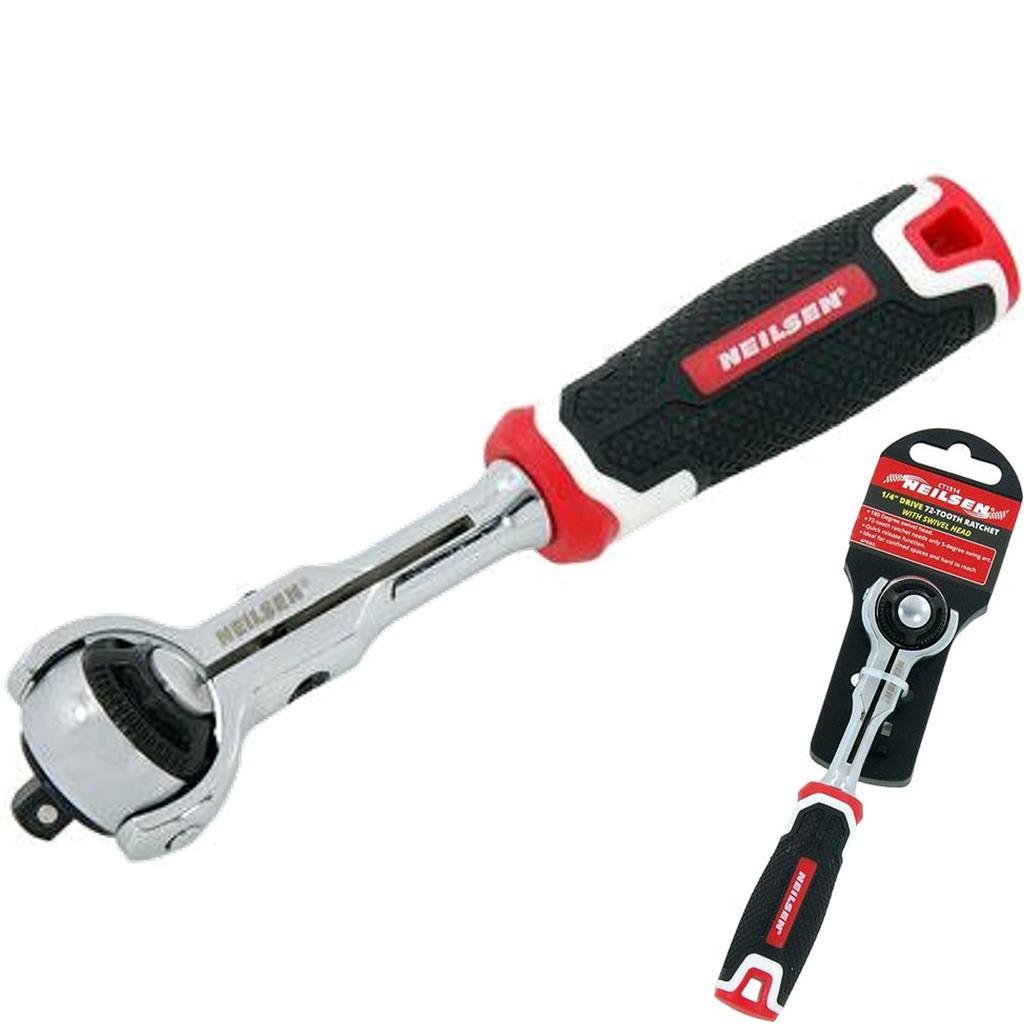 Neilsen Swivel Head Socket Reversible Ratchet Handle Quick Release 1/4" Tool 72T