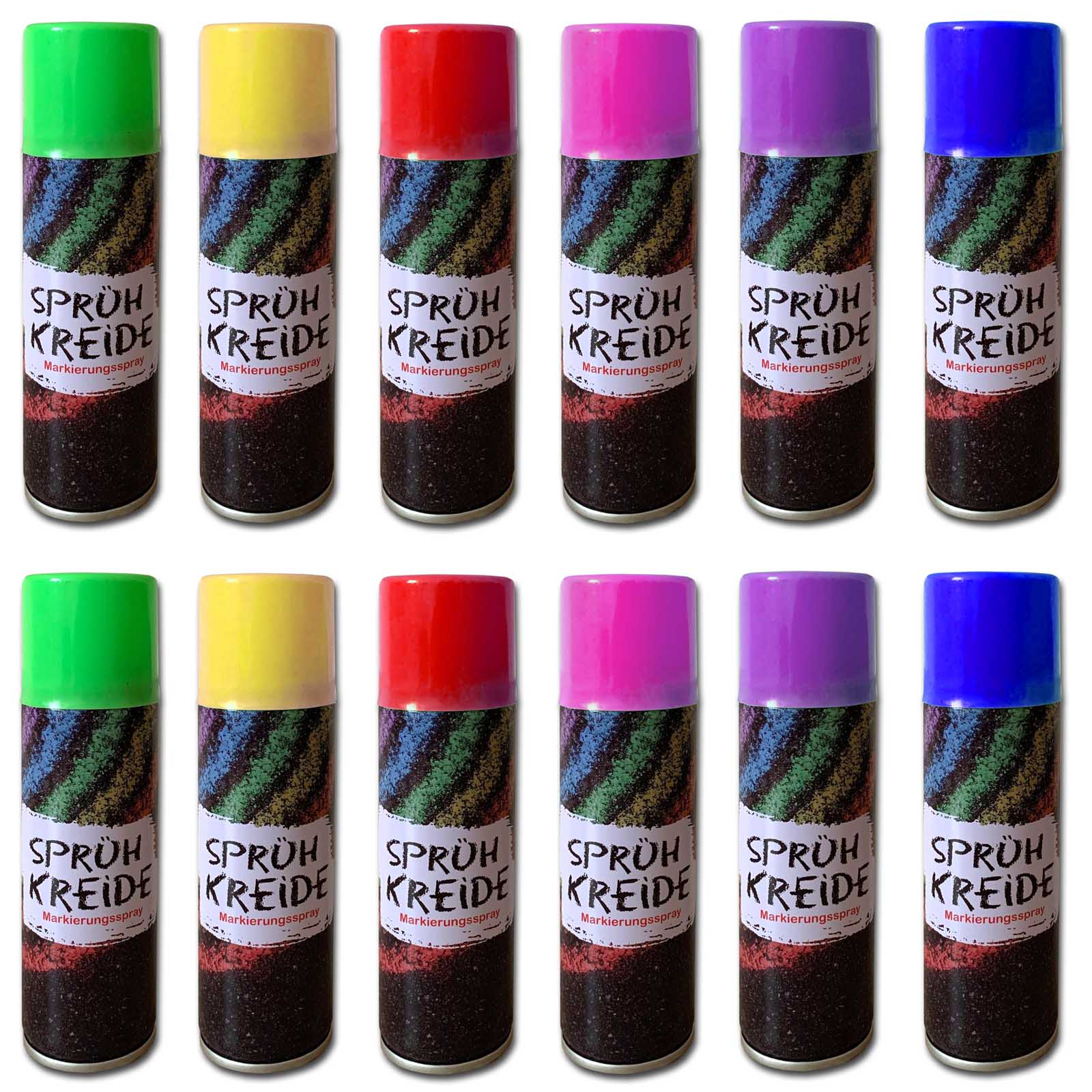 12er Set Sprühkreide 175 ml je Dose 6 Farben Sprüh Markierungsspray Kreidespray