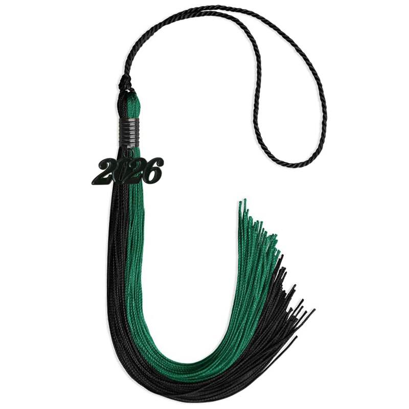 The Double Color Tassel with Black Date Drop is a refined and elegant accessory designed to elevate your graduation ensemble. Featuring a distinguished black-colored year drop, this tassel adds a personalized touch that symbolizes the graduate?ÇÖs achievement. With a 9-inch length and a 6.5" hang loop, it is designed to fit most caps, ensuring a seamless and secure fit. The dual-color design provides a sophisticated and stylish contrast, making it an ideal choice for graduates seeking a distinctive look. Beyond its role in completing the graduation attire, this tassel serves as a cherished keepsake, commemorating the dedication and hard work that led to this significant academic milestone.