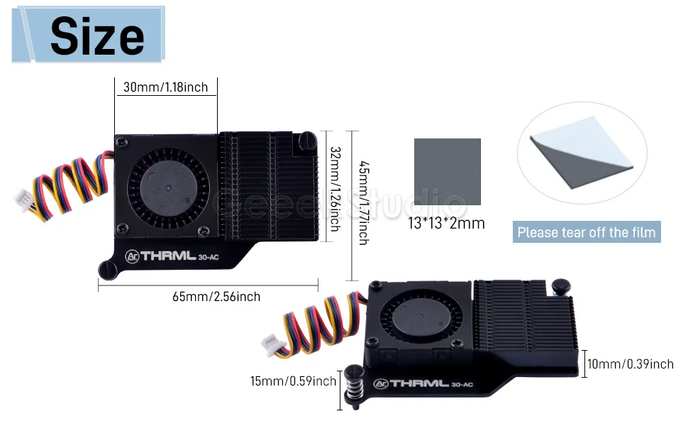 Thermal pad dimension: 13x13x2mm
