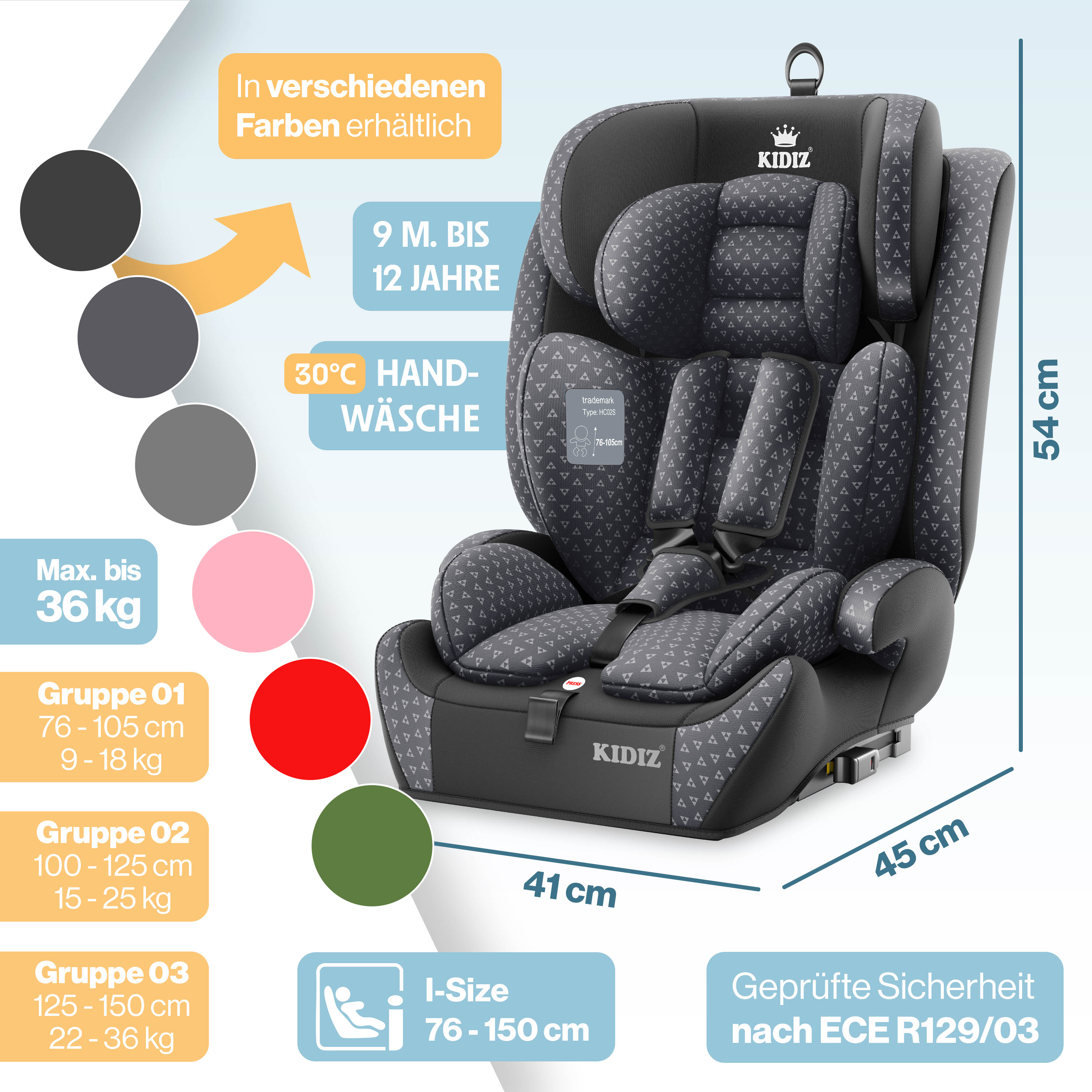 SICHERHEIT, DIE MITWÄCHST: Mit KIDIZ erleben Sie Sicherheit, die mitwächst! Unsere Kinderautositze sind darauf ausgelegt, Ihr Kind von den ersten Fahrten bis zum Erwachsenwerden zu begleiten. Vertrauen Sie auf KIDIZ, um Ihren kleinen Passagieren Sicherheit und Geborgenheit zu bieten - zu jeder Zeit, bei jeder Fahrt!