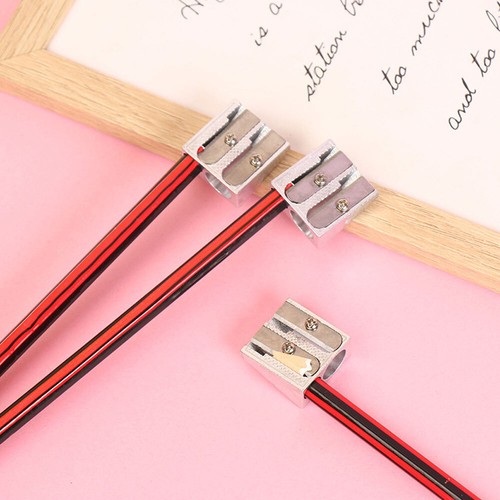 Features: Stainless steel blade, sharp and efficient, labour-saving, not easy to break off the core. For study, work, gift for kids and all. Pencil sharpener only, other accessories demo in the picture is not included! Specification: 100%Brand New and High Quality Type:Pencil Sharpener Material:Metal Color: Silver Size: 2.3x1.3x1cm/0.91x0.51x0.39in Package Include: 1 PC Pencil sharpener