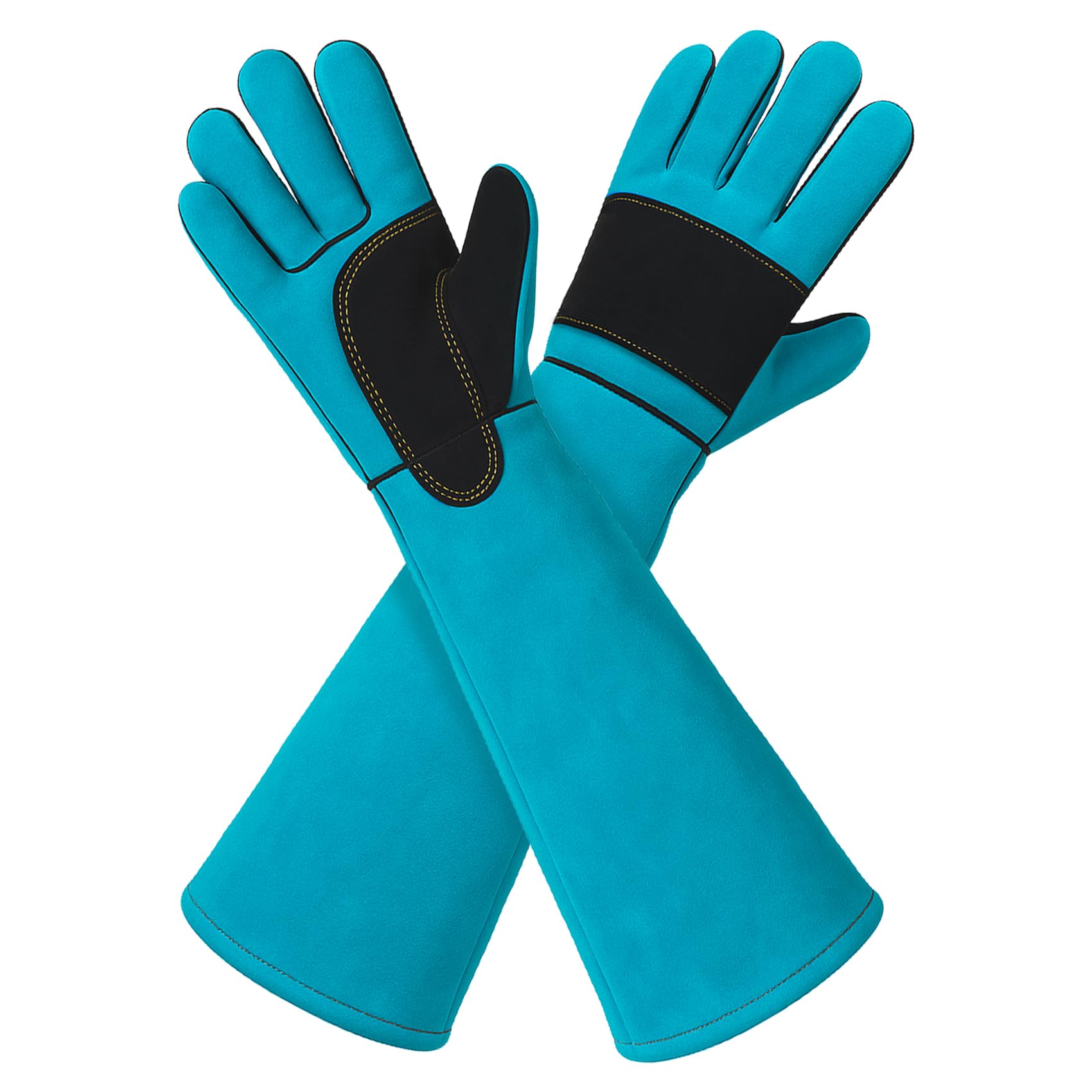 Experience reliable hand and arm protection with these 23.6 inch leather welding gloves. Made from 1.5 mm split cowhide with a soft cotton lining, they provide heat resistance up to 932℉ / 350℃, shielding you from sparks, hot coals, and spatter during MIG, TIG, and Stick welding. The extra-long gauntlet design extends coverage to the wrist and forearm, adding defense against scratches, thorns, and light animal bites. Thick, durable leather construction makes these gloves both bite-resistant and scratch-resistant, ideal for handling pets, parrots, reptiles, and other non-venomous animals. Reinforced palms, double-layer protection, and dense stitching enhance durability and grip while maintaining flexibility for long sessions. Whether you’re working in welding, grilling, fireplace maintenance, falconry, or gardening with roses and cactus, these multi-purpose heat-resistant gloves deliver lasting comfort and dependable protection.