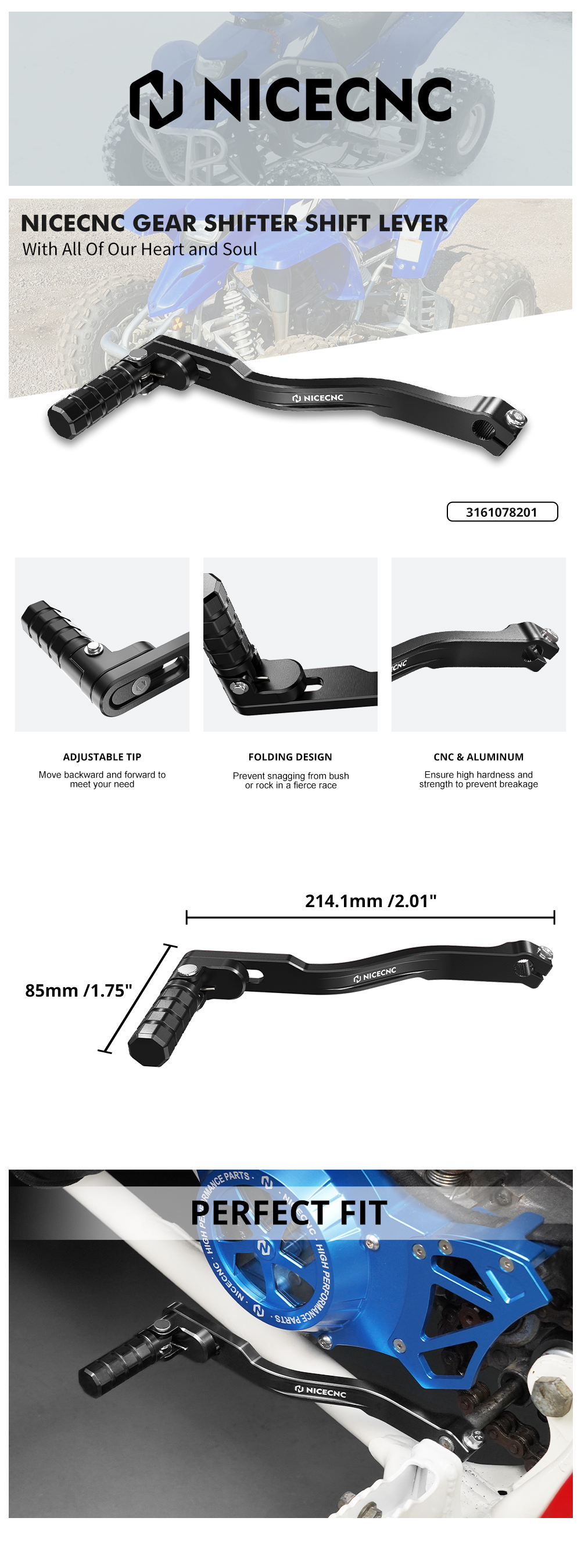 【Adjustable Design】You can adjust the shift lever tip backward and forward to meet your need. 【Folding Design】Prevent snagging from bush or rock that may result in a broken lever in a fierce race. 【Anti-Slip Spline Design】Designed with splines on the tip to provide a stronger grip, prevent your foot from slipping when you fly across muddy trails. 【CNC & Aluminum】 CNC machined from billet aluminum that ensures high hardness and strength to prevent breakage. Direct and perfect replacement for the stock. 【Rustproof Anodized Surface】Processed by anodizing for added corrosion resistance. You don't need to replace it frequently, and that saves you a lot in the long run. Package Included: 1x Gear Shifter Shift Lever Fitment: For Yamaha Blaster 200 YFS200 1988-2006 For Yamaha Blaster 200 YFS200SE Special Edition 2006