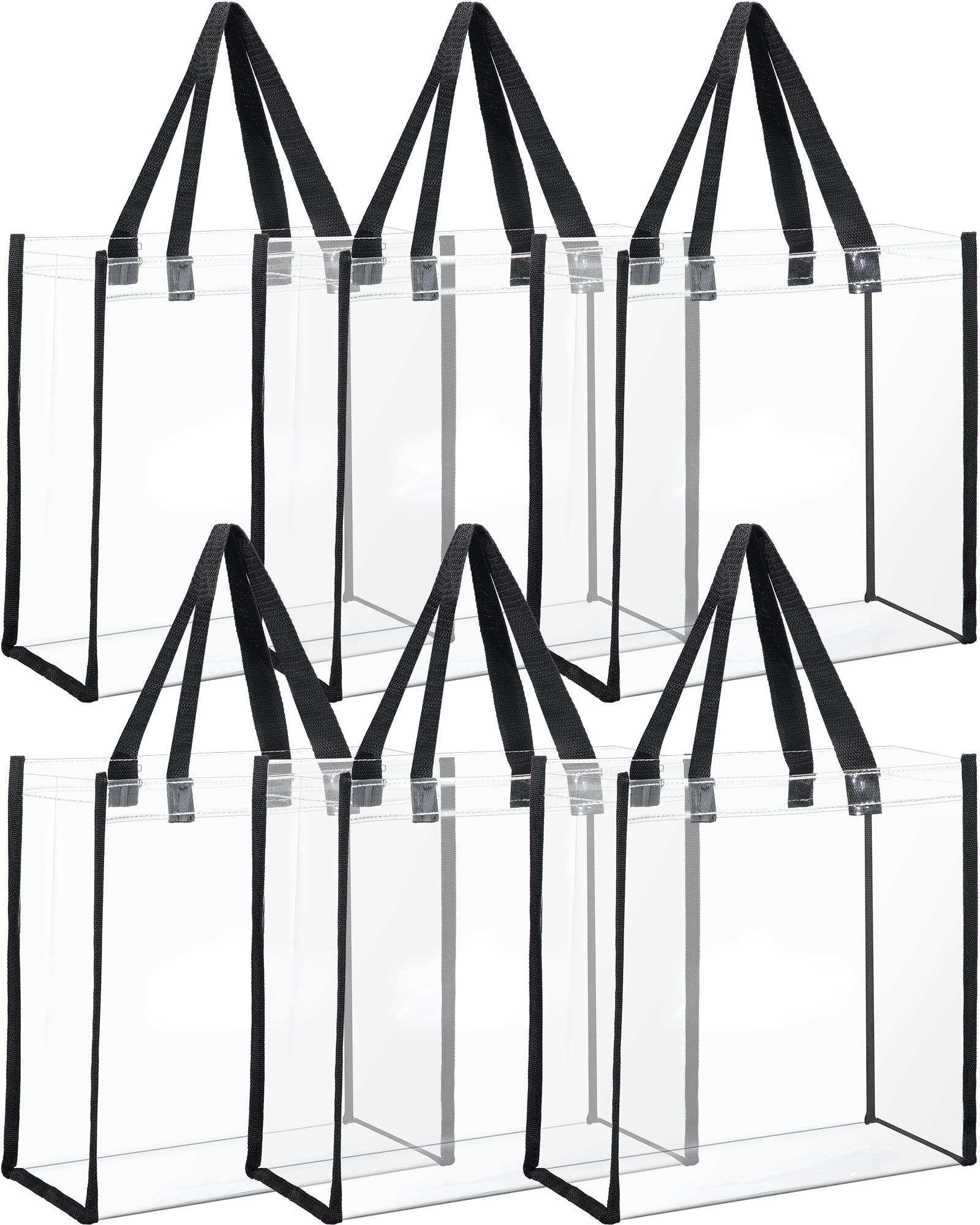 Quantity and size: you will get 6 pieces of large clear tote bags, measuring about 12 x 12 x 6 inches, the big size and sufficient quantity can meet your daily use and sharing needs, suitable for you to store clothes, crafts, gifts, books, food, snacks, swimsuits, water bottles, and other items for shopping, traveling, working and more