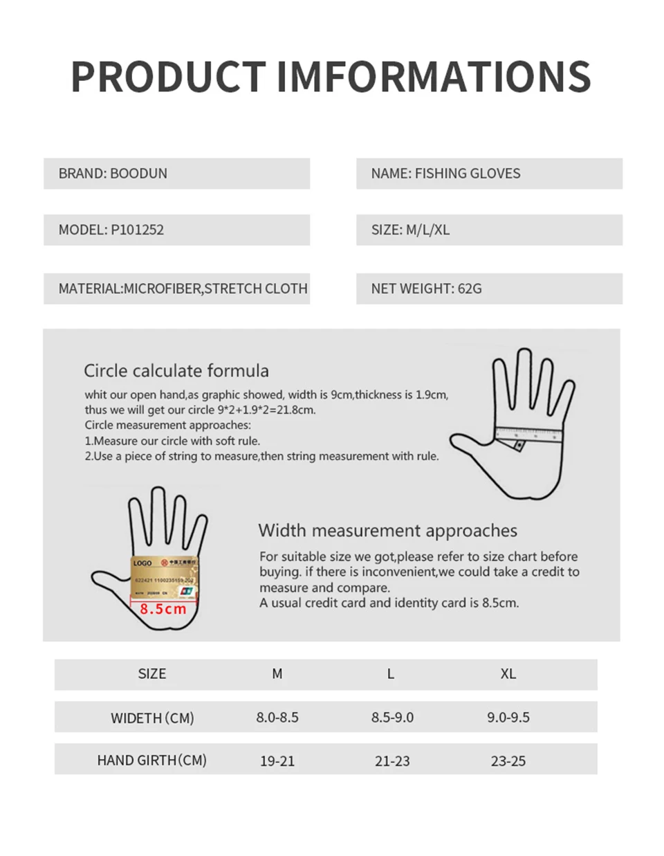 M for the palm width about 8-8.5cm ( Hand Circumference 19-21cm )