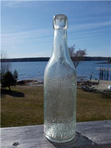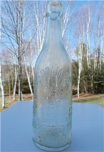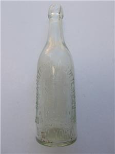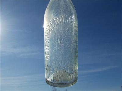 Antique Light Apple Green New Amsterdam Bottling Co. 538 West 53rd St New York 9 1/2" bottle. Embossed with name and address and logo N A B Co. Back has raised - This Bottle Not To Be Sold. This proved to be a difficult bottle for me to get good pictures. I will be listing several bottles that I found in the barn. Washed with soap and water only. Not a bottle collector.