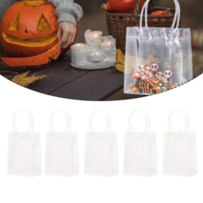 5PCS Reusable Clear PVC Plastic Tote Bag With Clear Handle Beautiful Gift Bag