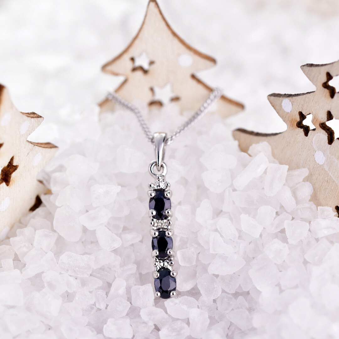 Natural Sapphire Diamond Necklace Sterling Silver Blue Gemstones Gift