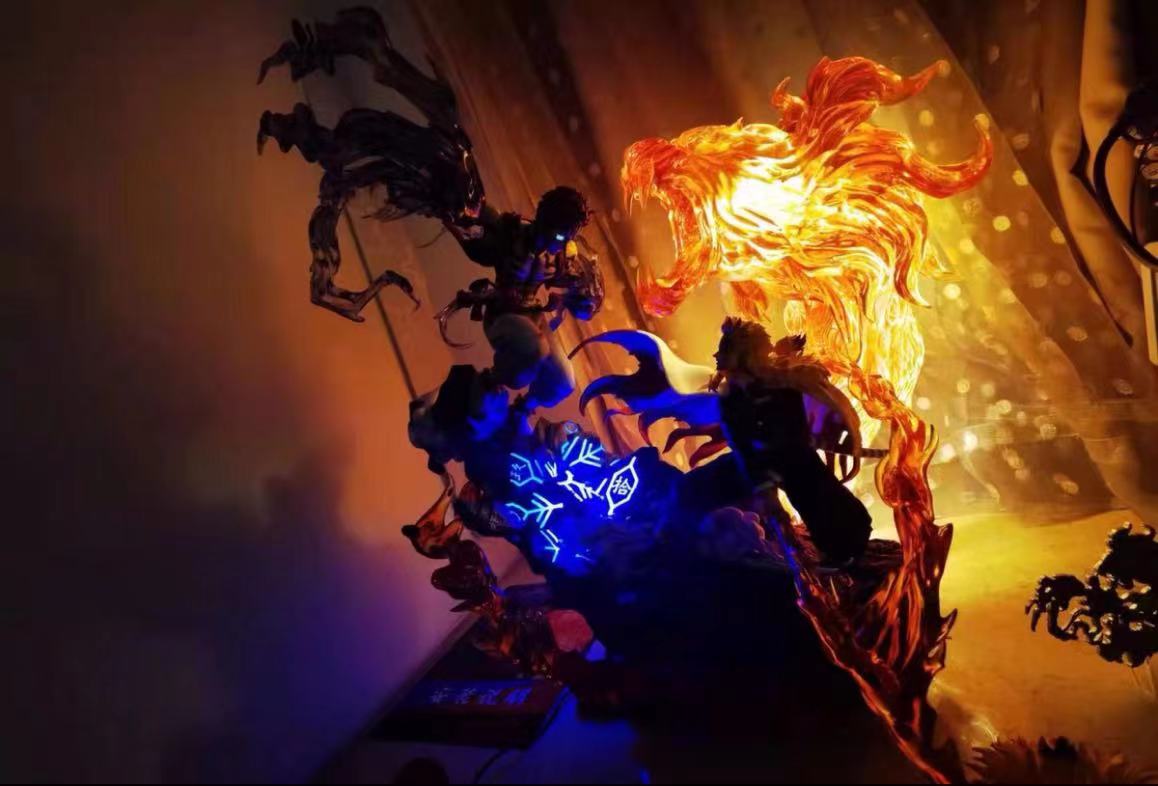 HB Studio Demon Slayer Rengoku Kyoujurou VS Akaza Resin Model In Stock Led New