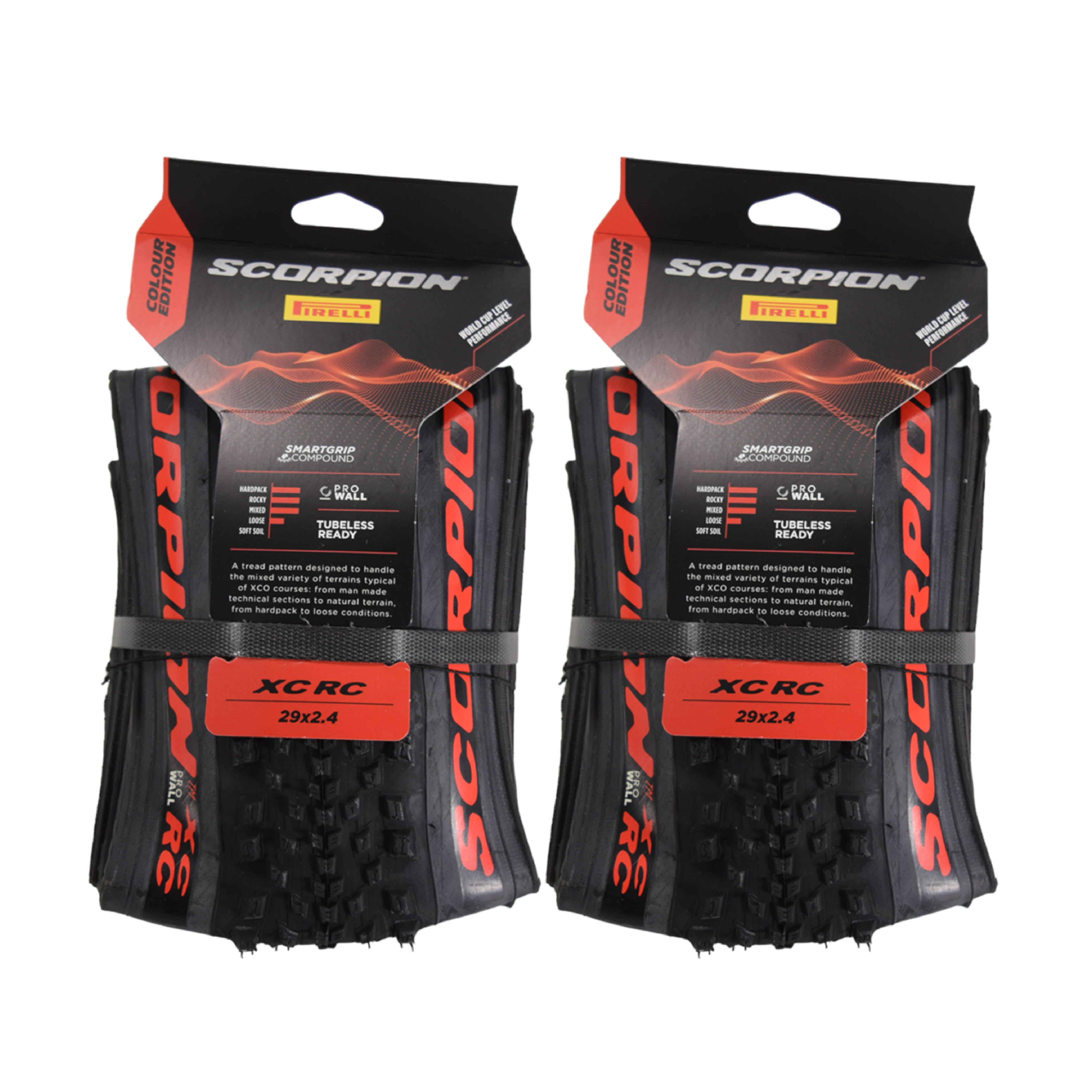 The Pirelli Scorpion XC RC Bicycle Tire is crafted for competitive cross-country riders who prioritize speed, efficiency, and reliable traction on mixed terrain. Designed for fast-rolling performance on hardpack, loose over hard, and technical XC trails, this tire features an optimized tread pattern with a smooth centerline for low rolling resistance and aggressive shoulder knobs for confident cornering. Pirelli’s race-proven SmartGRIP Compound delivers the perfect balance of grip and efficiency, ensuring rapid acceleration and control when climbing and sprinting. The 120 TPI LiteWALL casing provides a lightweight yet durable construction, enhancing responsiveness while maintaining essential puncture protection for race-day reliability. Tubeless-ready for improved traction, lower pressures, and reduced flats, the Scorpion XC RC is built to dominate XC courses with precision. Whether you're attacking singletrack, powering through climbs, or pushing for the podium, this tire delivers the speed and control needed for peak performance.