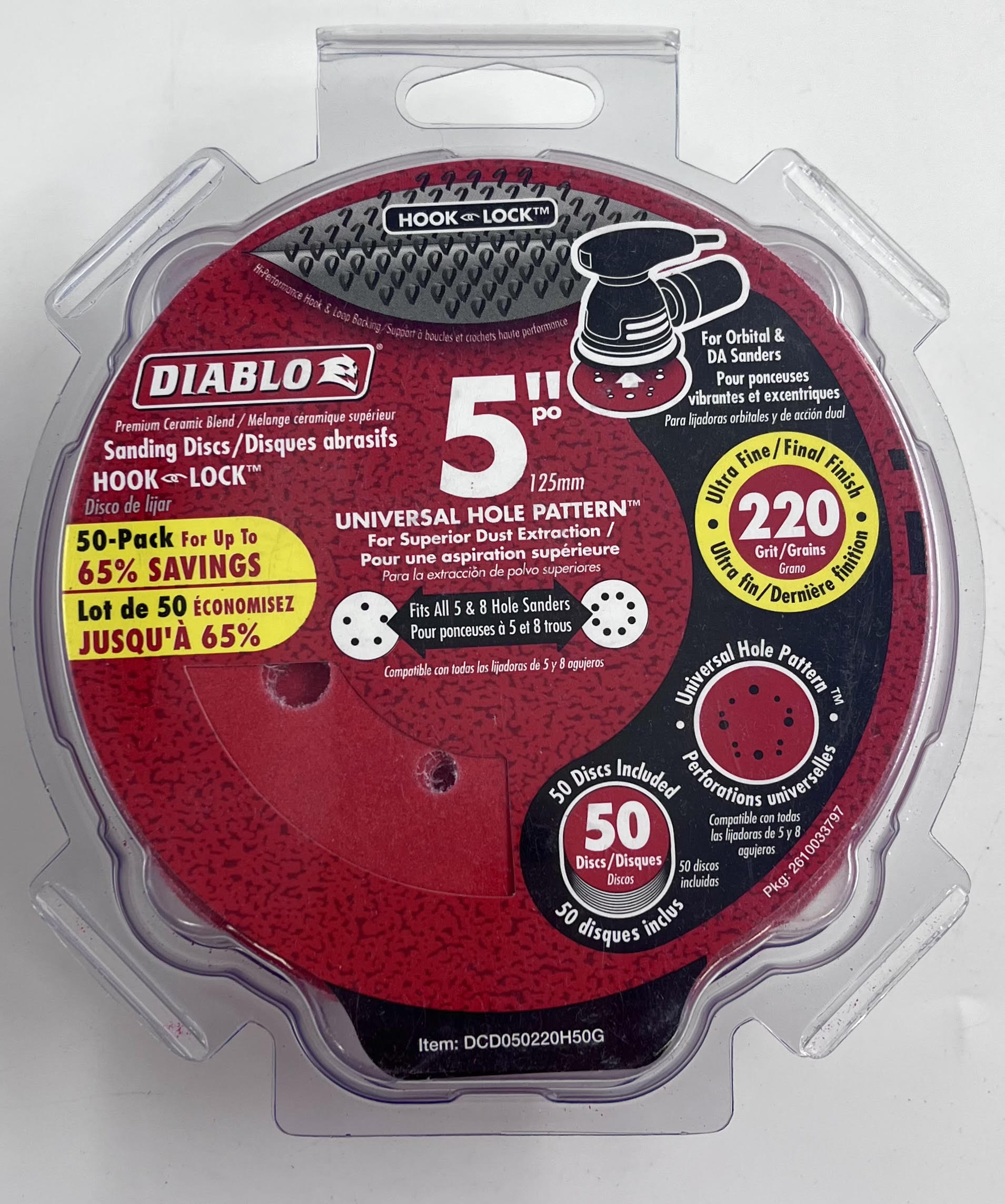 Diablo DCD050220H50G 5" 220-Grit Universal Hole Sanding Discs 50-pack