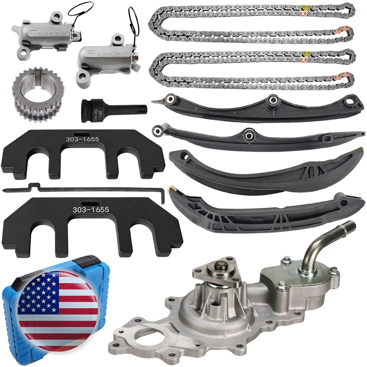 Water Pump Timing Chain Kit Camshaft Tool For Lincoln Ford F150 Navigator 3.5L