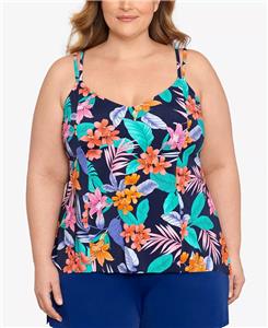 Swim Solutions Women Navy Multi Plus Size Printed Double Strap Tankini Size 16W