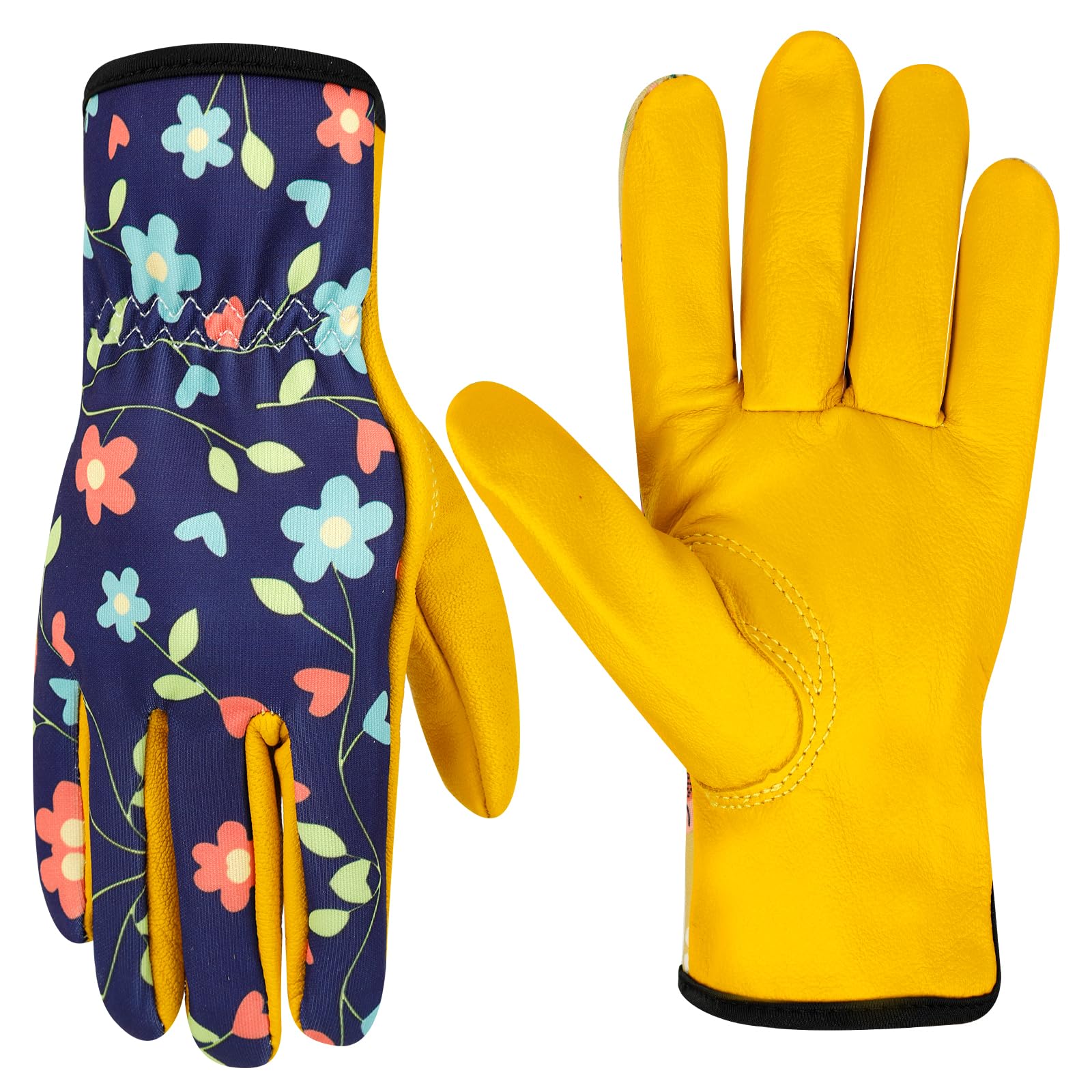 FLEXIBLE AND PRETTY - The womens gardening gloves show great grip performance, microfiber gloves for plants can hold garden tools easily. Pretty patterns printed on leather gardening gloves women, suit for ladies women who like garden work. Great heavy duty gardening gloves.