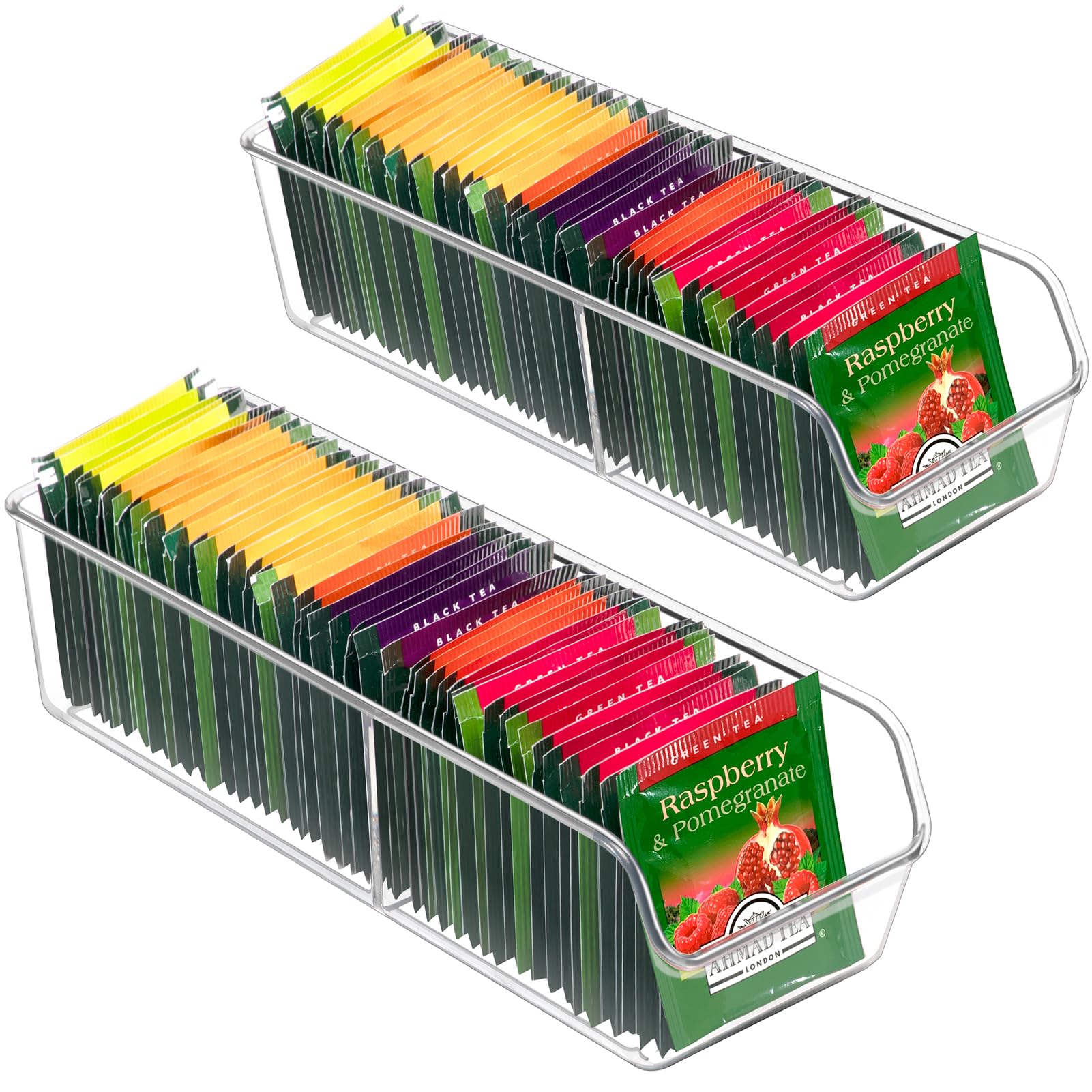 2Pack Clear Acrylic Tea Bag Organizer Storage for Counter Pantry Kitchen Cabinet