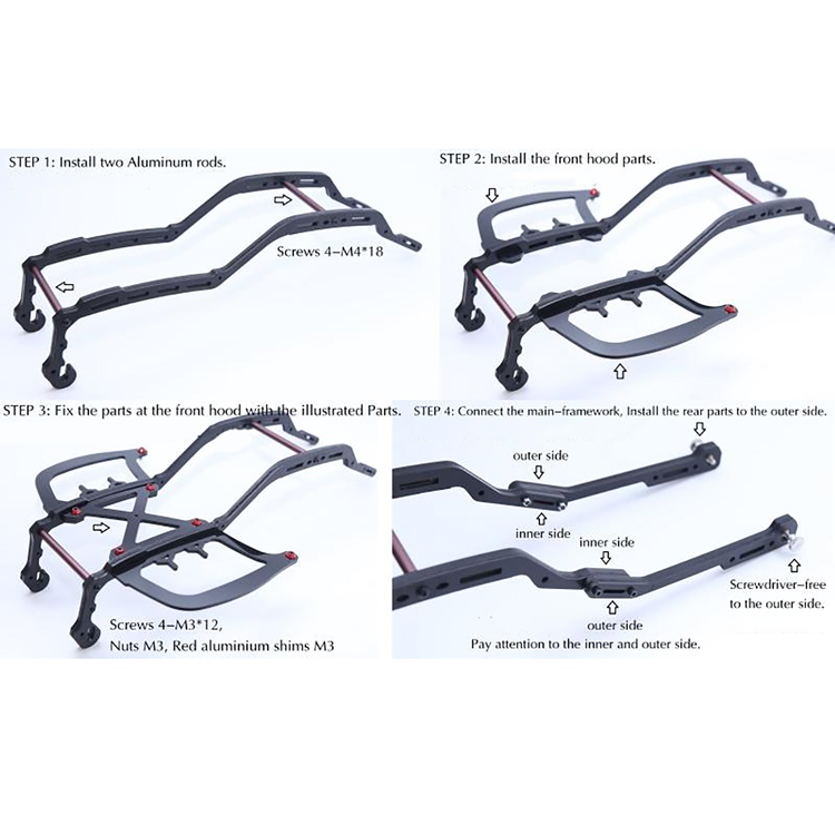 l The roll cage is compatible with SENTON original front and rear anti-collision and original car shells. Other sub-factory car shells are unknown. Other anti-collision is not compatible