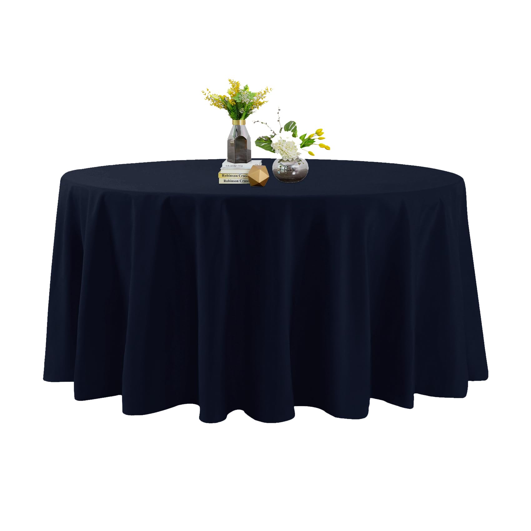 Round Tablecloth - 120 Inch Round Tablecloth - Stain and Wrinkle Resistant Washable Polyester Table Cloth, Decorative Fabric Table Cover for Dining Table, Buffet Parties and Wedding, Navy