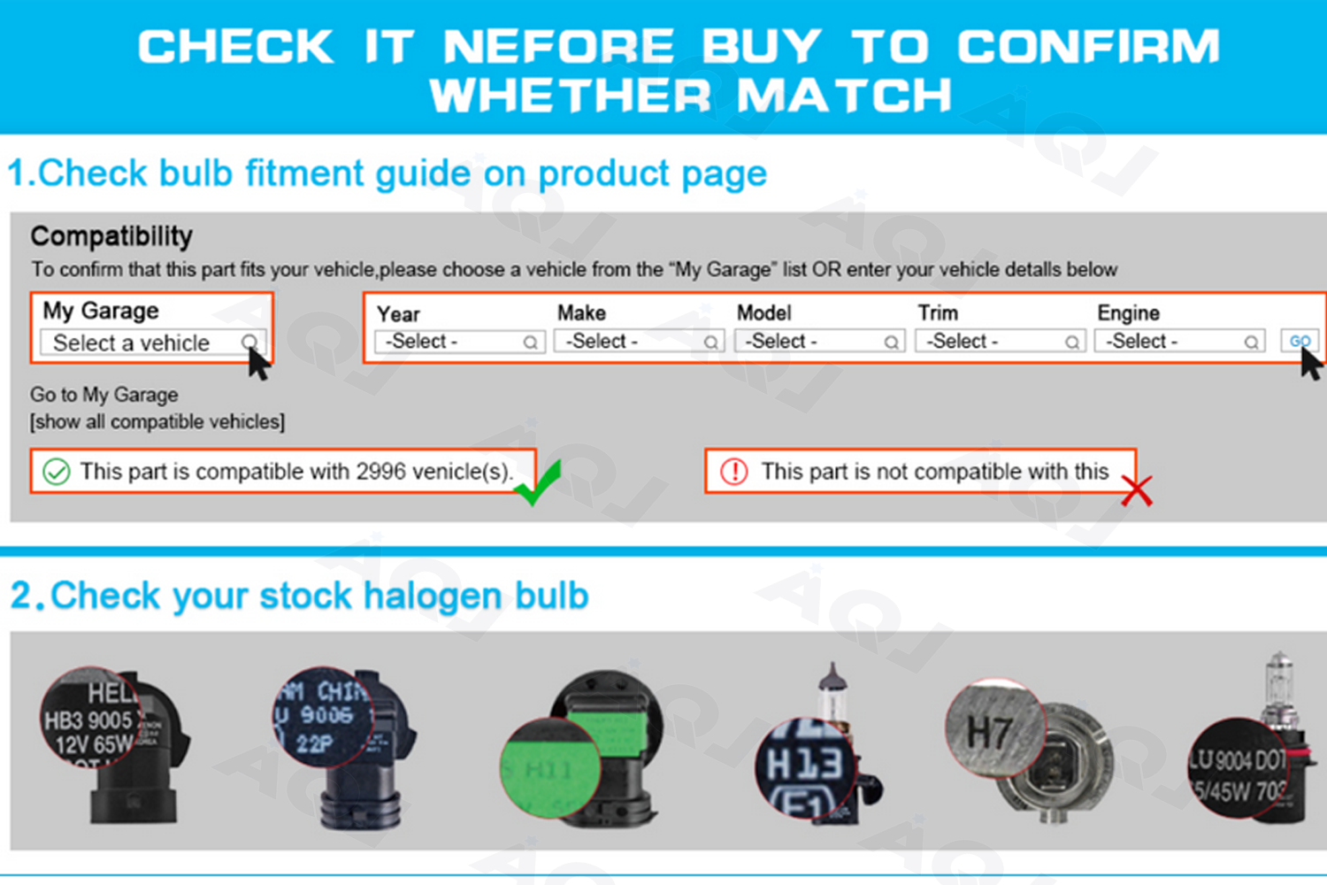 This listing compatible with 2 pairs (9012 + H11/H8) 6000K white super bright LED headlight + fog light bulbs conversion kit.