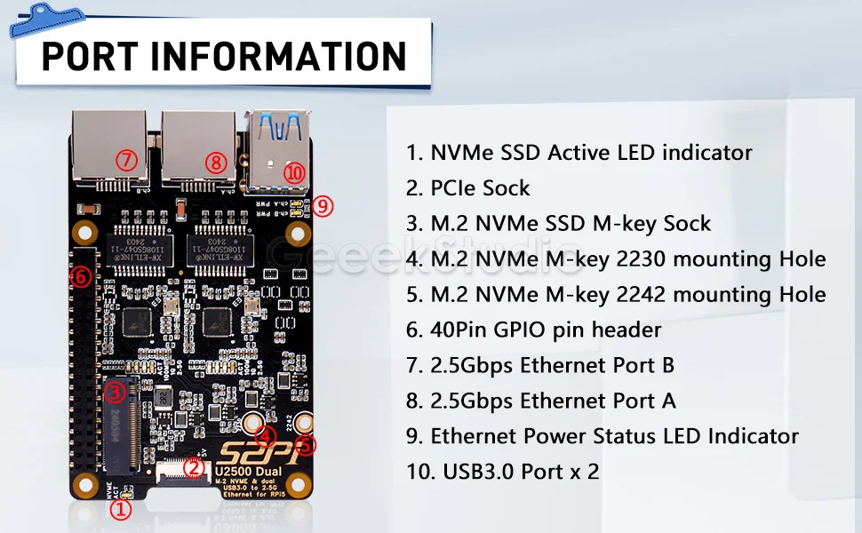 The U2500 M.2 NVMe & dual 2.5G ethernet for Raspberry Pi 5. The Raspberry Pi HAT (Hardware Attached on Top) board you have is a versatile expansion module designed to enhance the capabilities of your Raspberry Pi 5.
