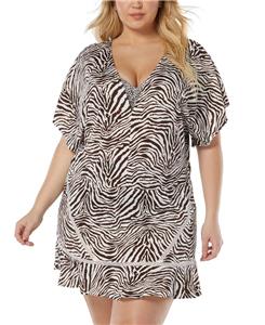 Take a walk on the wild side in this fierce plus size animal-print swim cover-up dress from Coco Reef.