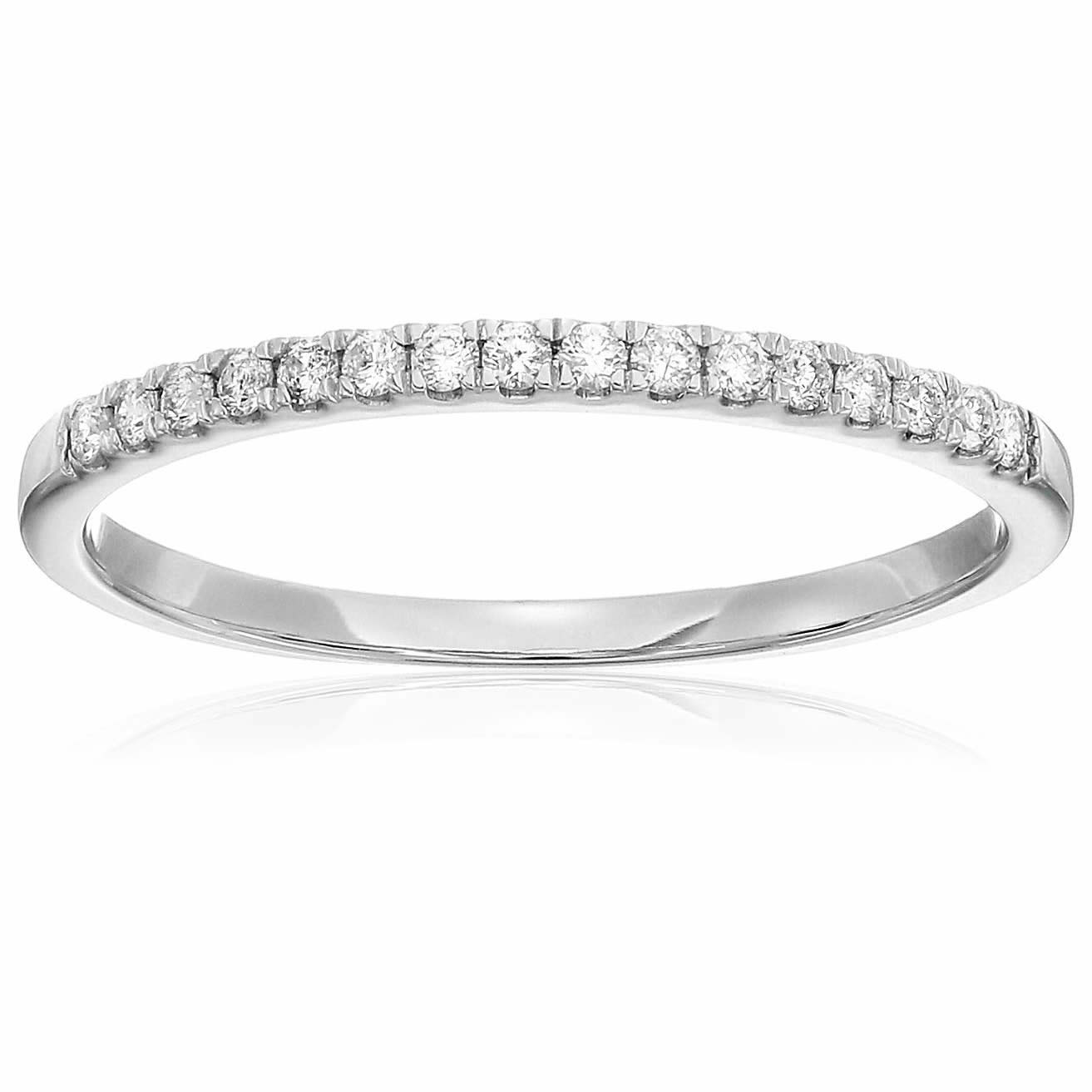 Product Description Lovely, elegant 1/5 cttw diamond wedding band in 14k white or yellow gold. The 16 sparkling diamonds are natural diamonds set in a prong setting. This ring is available in multiple sizes. Gift box is included with this bridal ring.