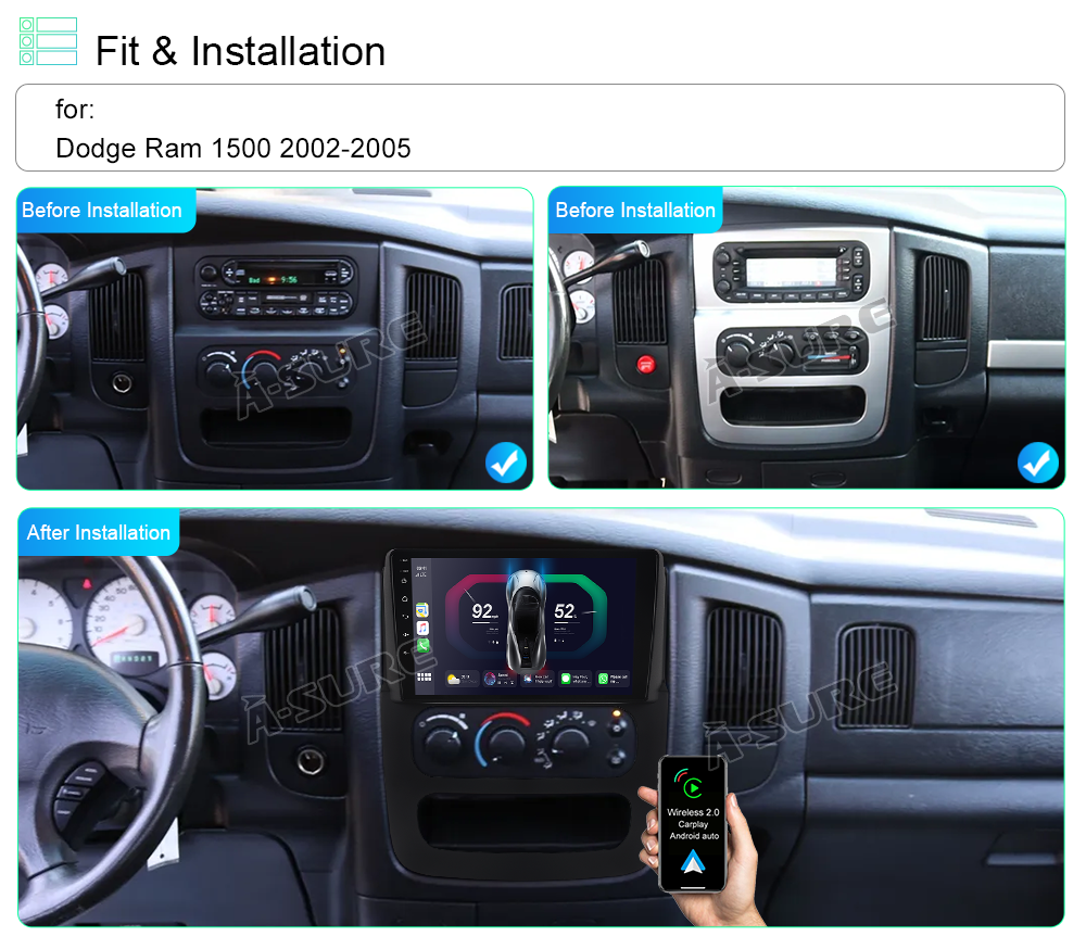 2. Android Auto: wired or wireless Android auto in-vehicle system can closely integrate the user's Android device and Android experience with the dashboard system. Users who use wireless Android auto can connect to the car system via Bluetooth to realize voice-controlled navigation, make calls, send and receive messages, and listen to music. It is only available for Android phone(Android phones need to download android auto APP)