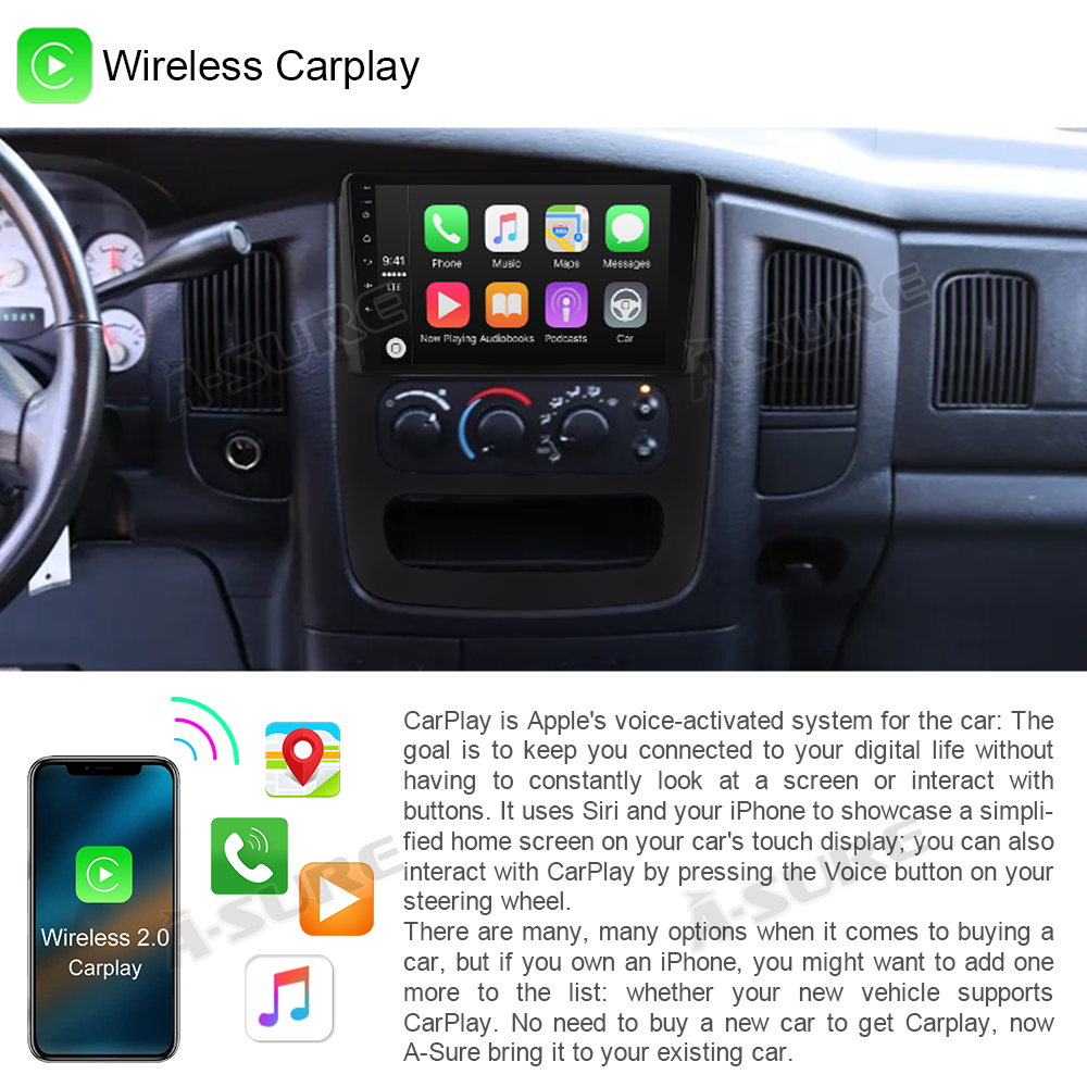1. Apple Carplay: wired or wireless Carplay in-vehicle system can closely integrate the user's iOS device and iOS experience with the dashboard system. Users who use wireless Carplay can connect to the car system via Bluetooth to realize voice-controlled navigation, make calls, send and receive messages, and listen to music. It is only available for iPhone