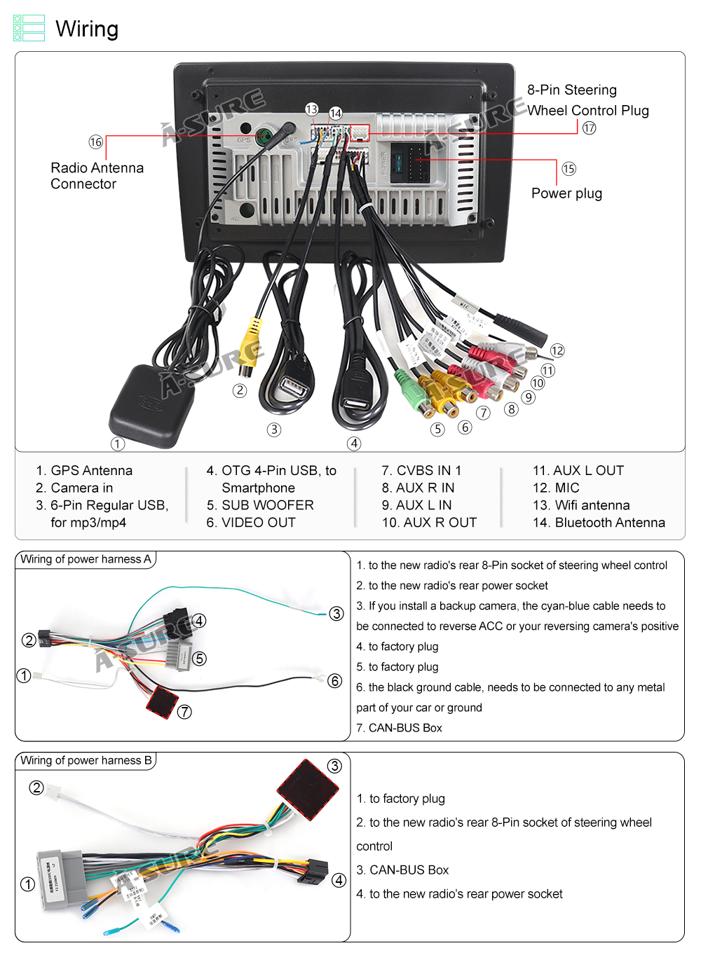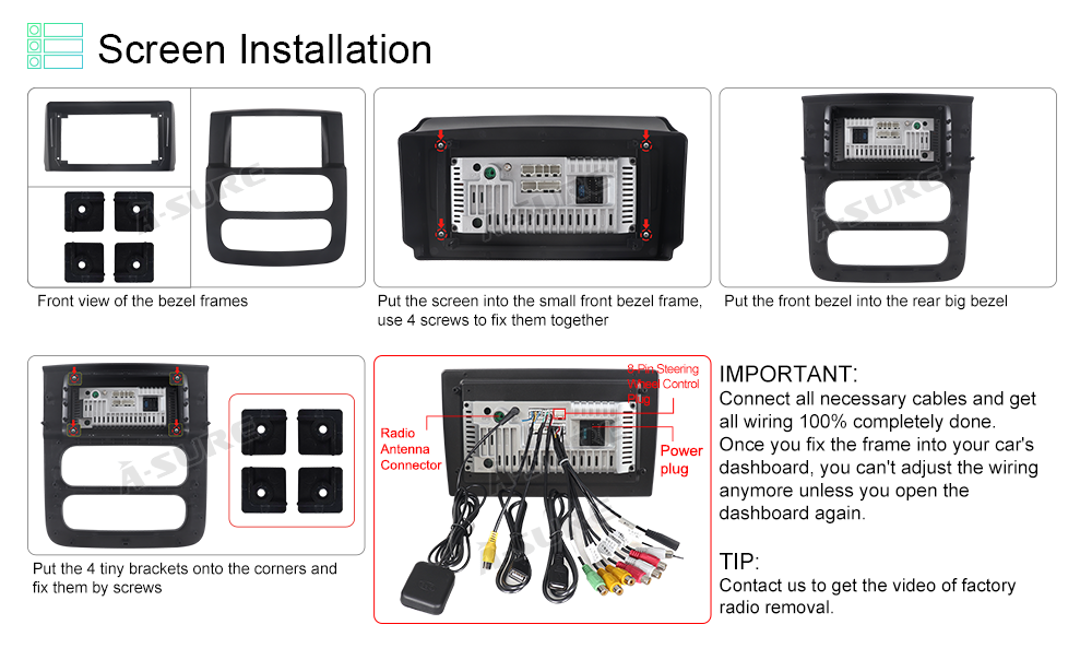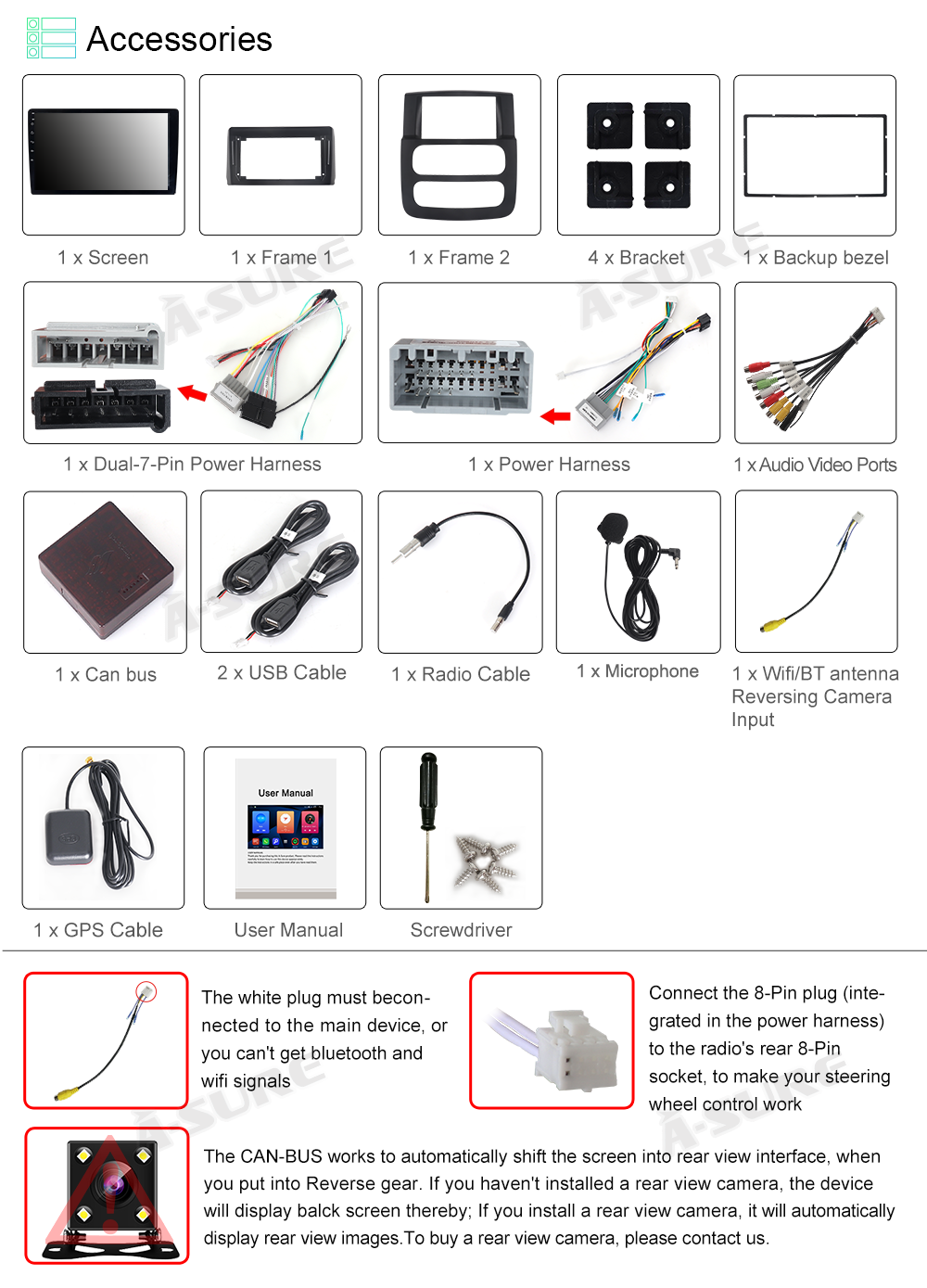 Included Components: Wiring harness, Frame, Screen, CAN BUS, Manual