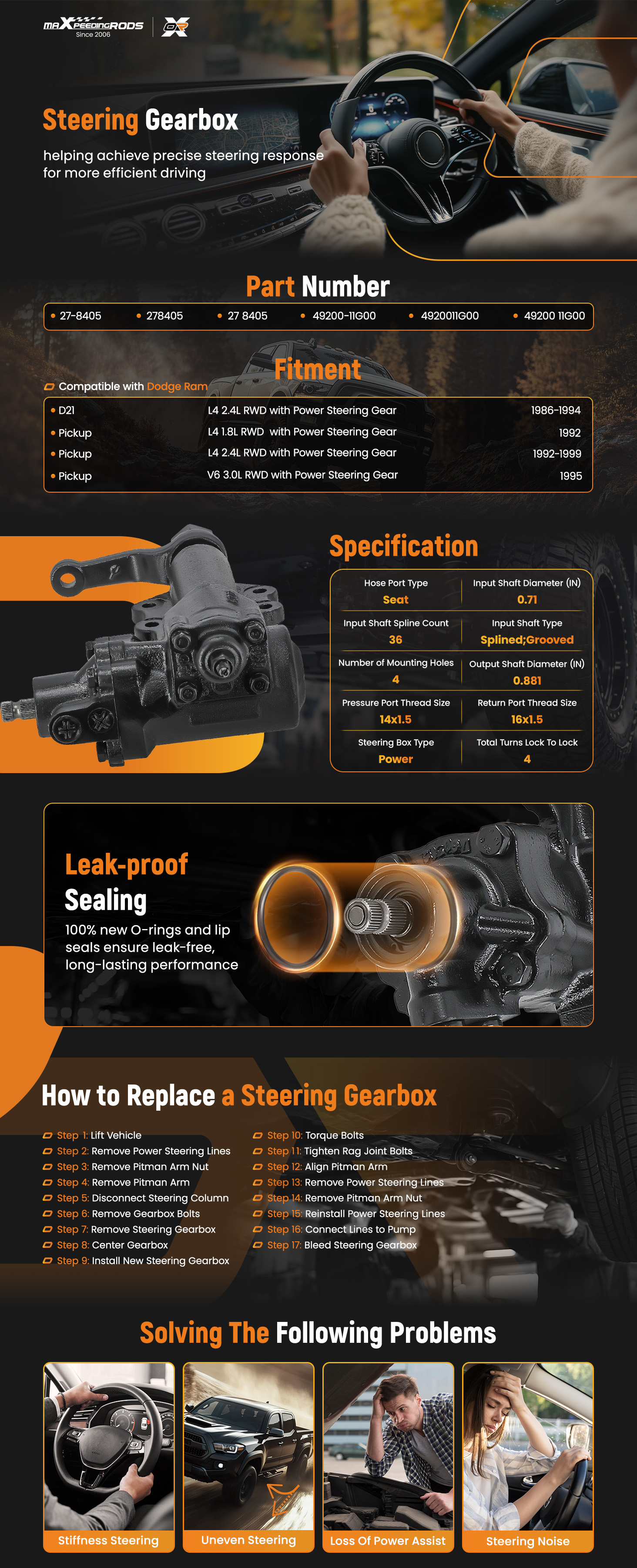 The steering gear box is best solution for the steering problem (such as clunking while turning, shaking steering wheel, excessive free play in steering, leaking power steering fluid, etc. ), and restore steering wheel operation.