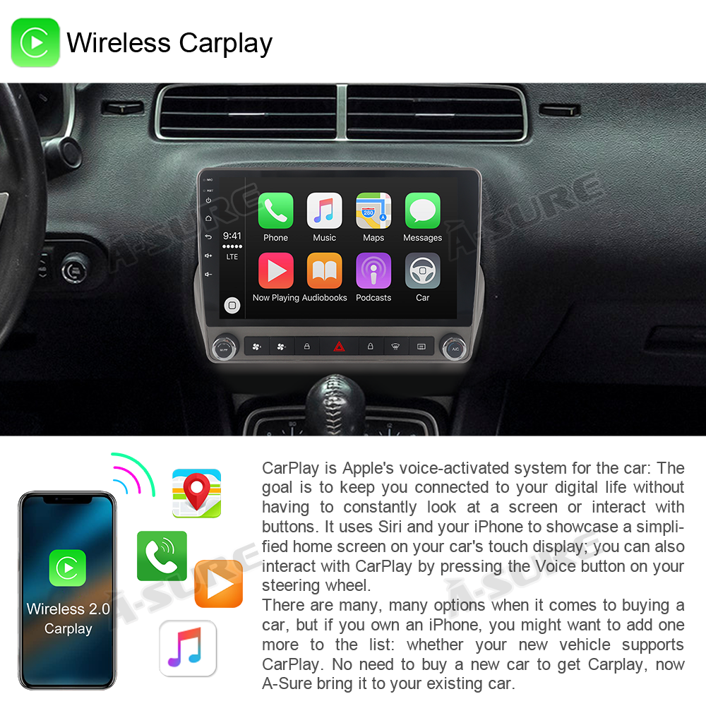1. Apple Carplay: wired or wireless Carplay in-vehicle system can closely integrate the user's iOS device and iOS experience with the dashboard system. Users who use wireless Carplay can connect to the car system via Bluetooth to realize voice-controlled navigation, make calls, send and receive messages, and listen to music. It is only available for iPhone