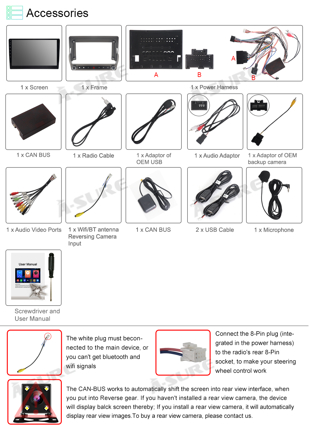 2. Android Auto: wired or wireless Android auto in-vehicle system can closely integrate the user's Android device and Android experience with the dashboard system. Users who use wireless Android auto can connect to the car system via Bluetooth to realize voice-controlled navigation, make calls, send and receive messages, and listen to music. It is only available for Android phone(Android phones need to download android auto APP)
