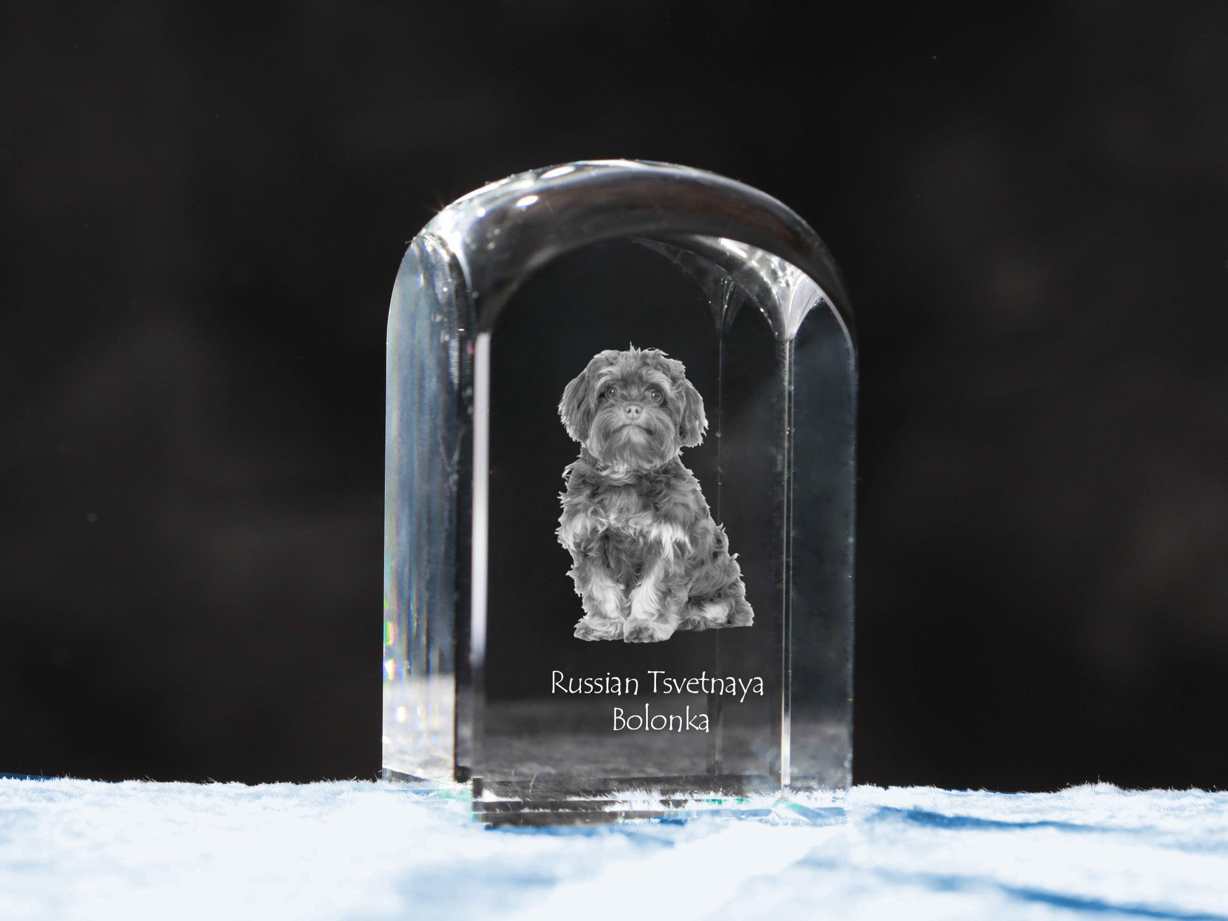 Bolonka, Russian Tsvetnaya Bolonka, Bolonka Zwetna - Kristallwürfel mit Bild, Hundebild im Kristall, sechseckiger Papierclip von Art-Dog.