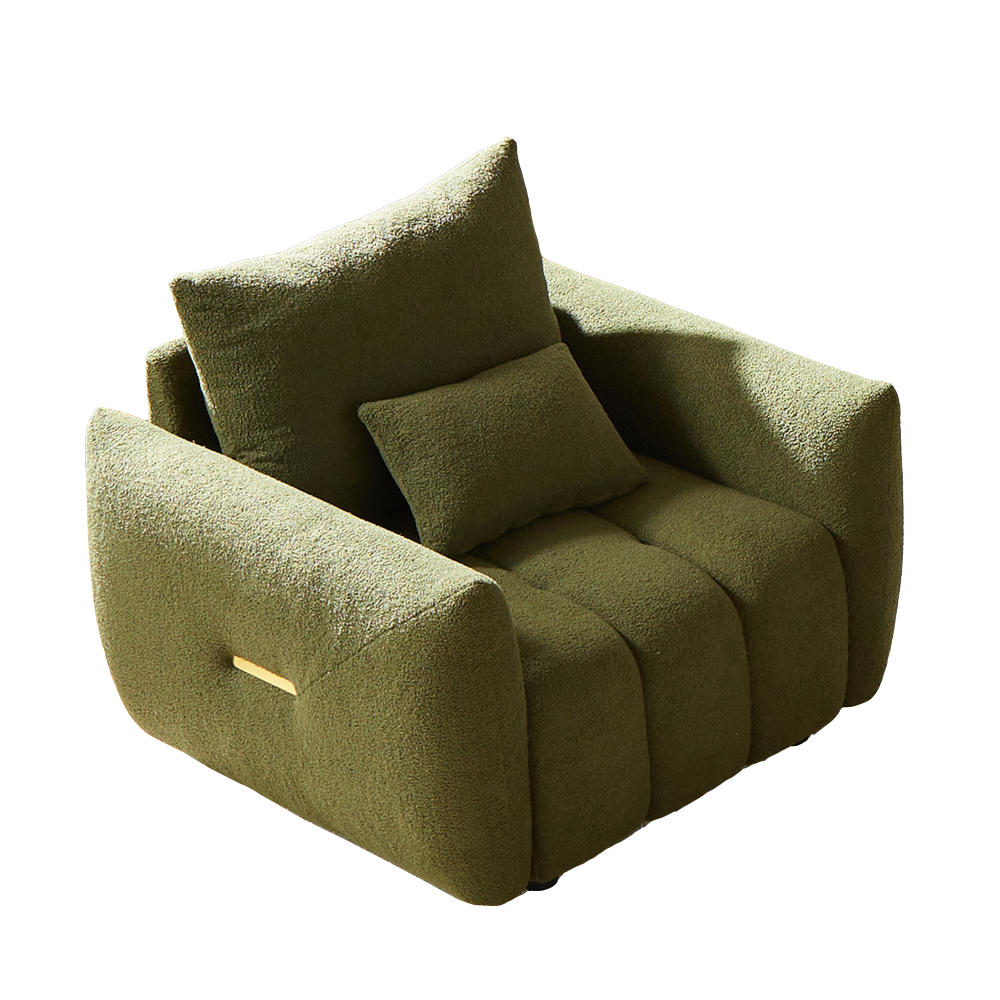 Sturdy solid wood frame, high-grade breathable teddy fleece fabric, filled with high-quality sponge, makes this sofa beautiful and comfortable, which can be perfectly matched with the living room, bedroom, home office and so on.