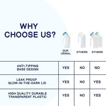 - ✅ SPILL-PROOF, SCREW CAP LID - Our portable urinal bottle is sturdy even if it’s empty and can stand on its own without tipping off. No need to worry about any unpleasant odor because our urinary chamber has a removable screw cap which makes cleaning an effortless task. Just twist it open, wash it and screw it back on. It’s that simple! We love to associate with great people and organizations. Please feel free to contact us if you have any questions, we will respond within 24 hours.