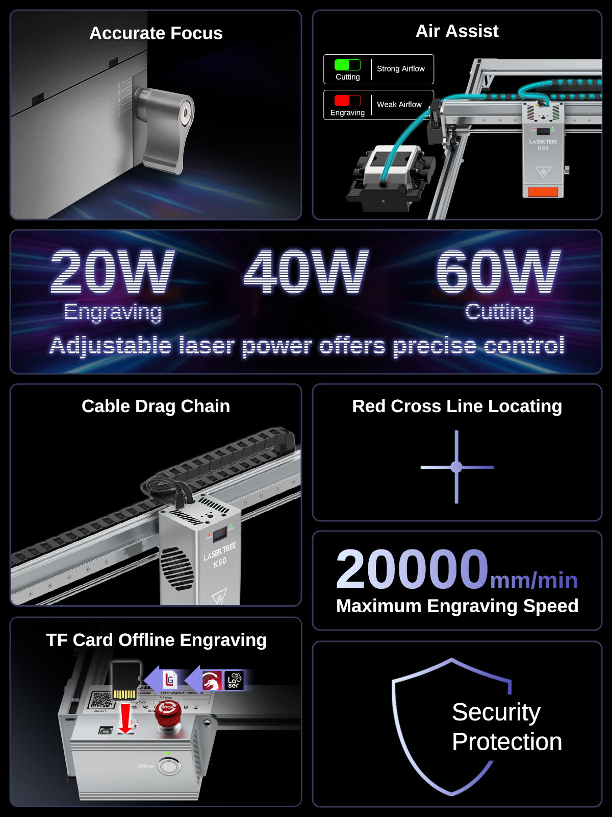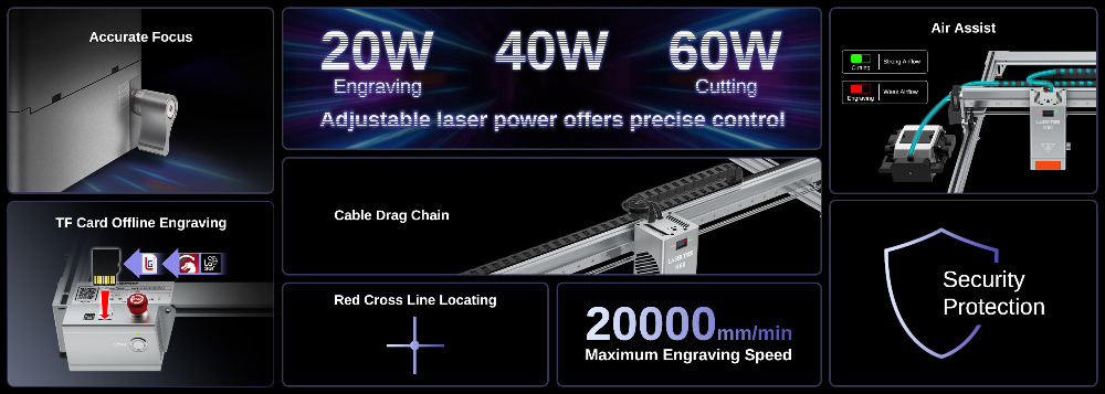 LASER TREE K1MAX 60W Laser Engraver Freely Adjustable 20W/40W 60W Power Laser Module Engraving Cutting Machine DIY Tools