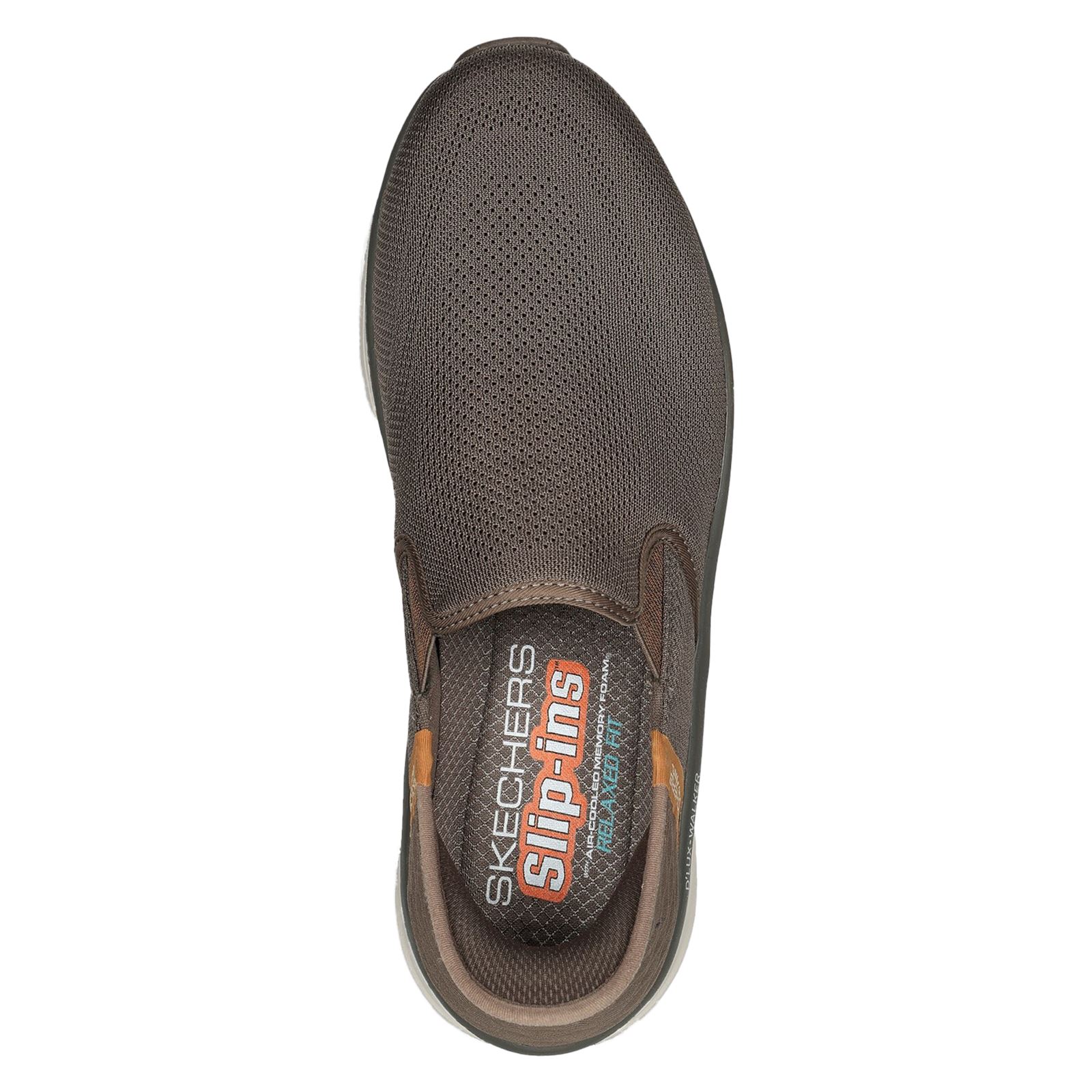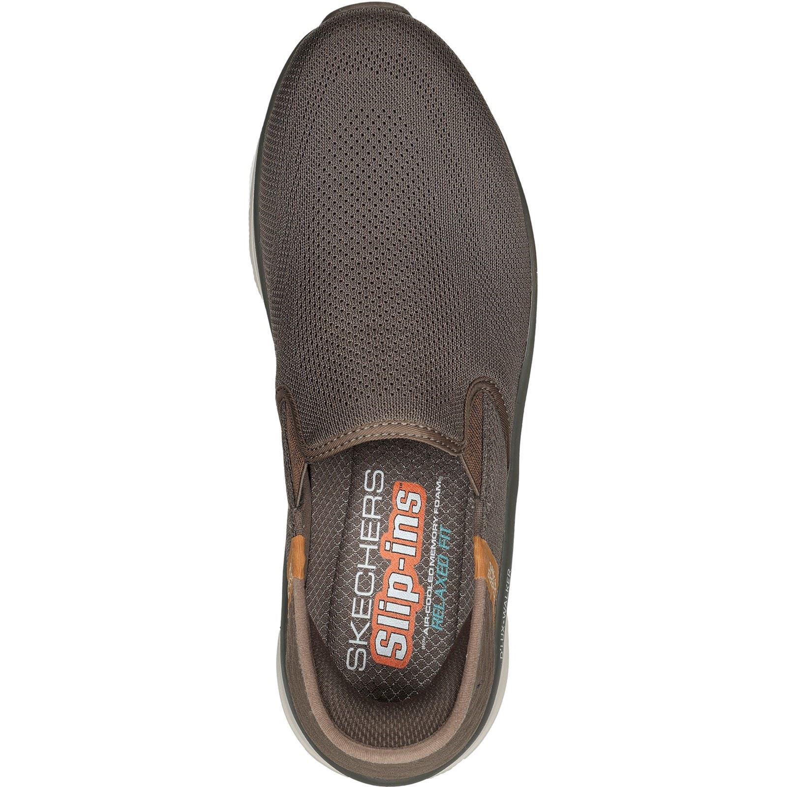 Simply step in and start your well-cushioned walk wearing Skechers Hands Free Slip-ins Relaxed Fit: D'Lux Walker Orford. Designed with our exclusive Heel Pillow. This roomy walking slip-on features a Skechers Air-Cooled Memory Foam cushioned insole.