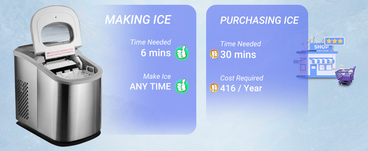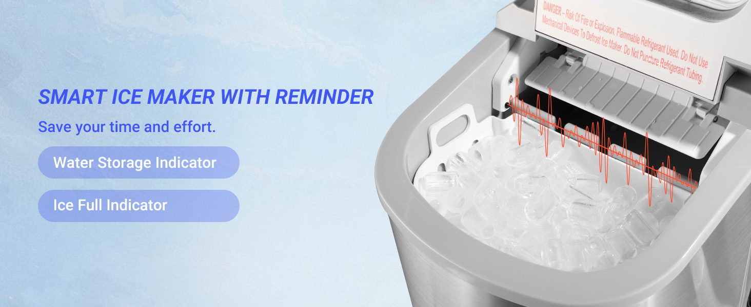 Safety First: No need to worry about overloading. The SMAD Countertop Ice Maker automatically halts ice production when the basket is full or when water needs replenishing. Enjoy the convenience without any concerns.