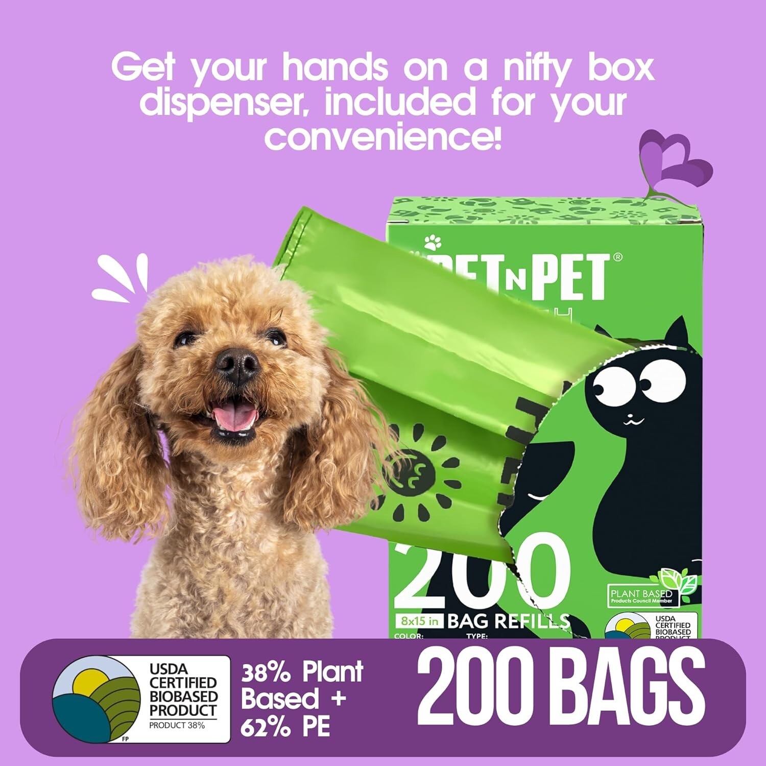 - doggie bags are 38% plant-based & 62% PE, reducing plastic waste and giving you peace of mind during walks.