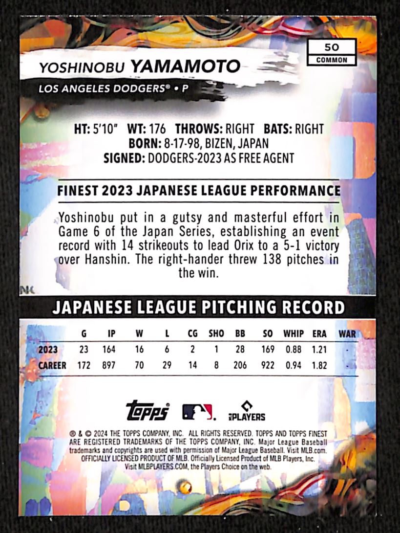 Yoshinobu Yamamoto 2024 Topps Finest Common RC Los Angeles Dodgers #50